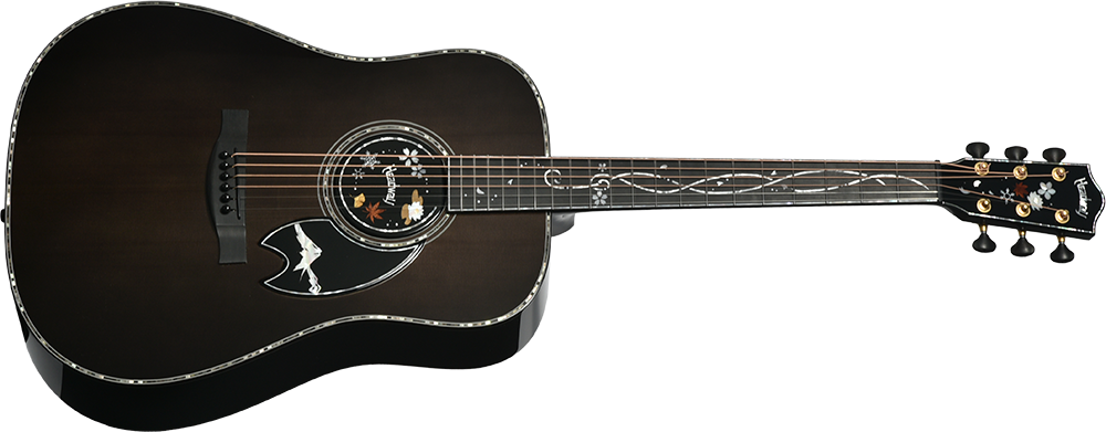 松本平から望む北アルプスの山々の情景をモチーフに、ピックガードへデザインを施しました。