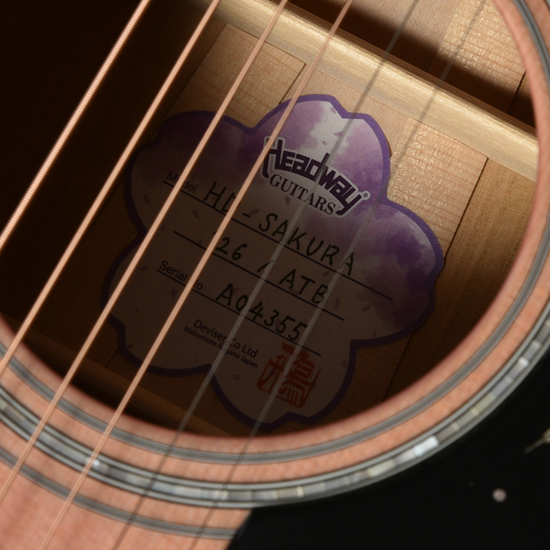 Headwayマスタービルダーの百瀬恭夫が1934年製のビンテージギターのブレーシングを研究し、独自に発展させたブレーシングを継承。Xのクロス位置がサウンドホールに近いセミフォワードシフトで新品時より低音の反応がよく、ボリュームのある鳴りを持ちます。フォワードシフトよりも5mmほどブリッジ寄りになっていることにより、トップ板の安定性も考慮された設計が行われています。
