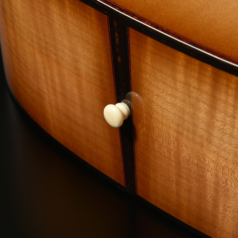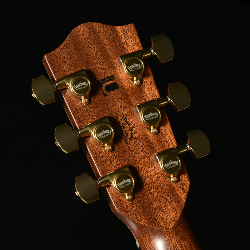 従来のHeadwayのネックのイメージを覆す薄さを重視した『Extra Slim U Neck』を採用。Headwayネックの特徴である安定性はもちろん考慮されつつも、カーボンバーを入れる「ハイストレングネック」仕様によってさらに剛性を高めています。カーボンバーの効果は安定性のみでなく、不要なネックのしなりを抑え弦の振動がスムーズにボディトップに伝わることにより、高音域の表現力が向上させています。