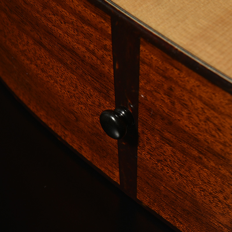 本モデルの製作のきっかけとなったのは、今年初めに仕入れた、目の詰まった高グレードのホンジュラス・マホガニーのサイド&バック材。この貴重な材を用いて、オーセンティックで理想的なサウンドを持つギターを作りたい――そんな思いから、製作がスタートしました。