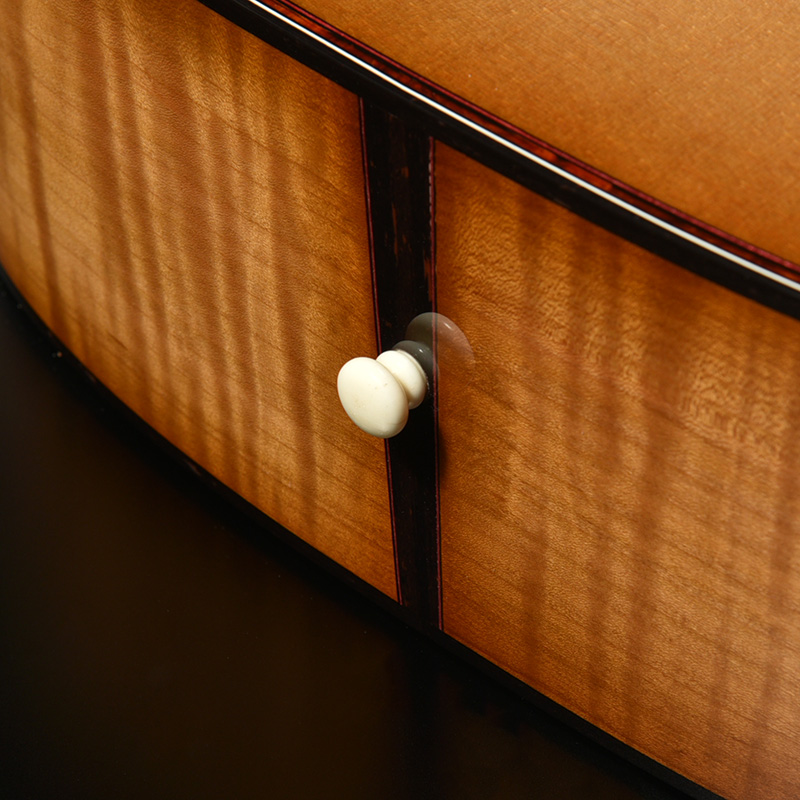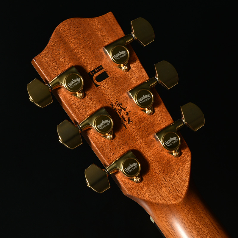 従来のHeadwayのネックのイメージを覆す薄さを重視した『Extra Slim U Neck』を採用。Headwayネックの特徴である安定性はもちろん考慮されつつも、カーボンバーを入れる「ハイストレングネック」仕様によってさらに剛性を高めています。カーボンバーの効果は安定性のみでなく、不要なネックのしなりを抑え弦の振動がスムーズにボディトップに伝わることにより、高音域の表現力が向上させています。