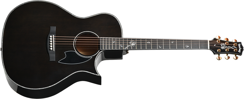 ヘッドと指板には、白蝶貝などの素材を用いたインレイ加工で水墨画を思わせるアートワークを施しています。