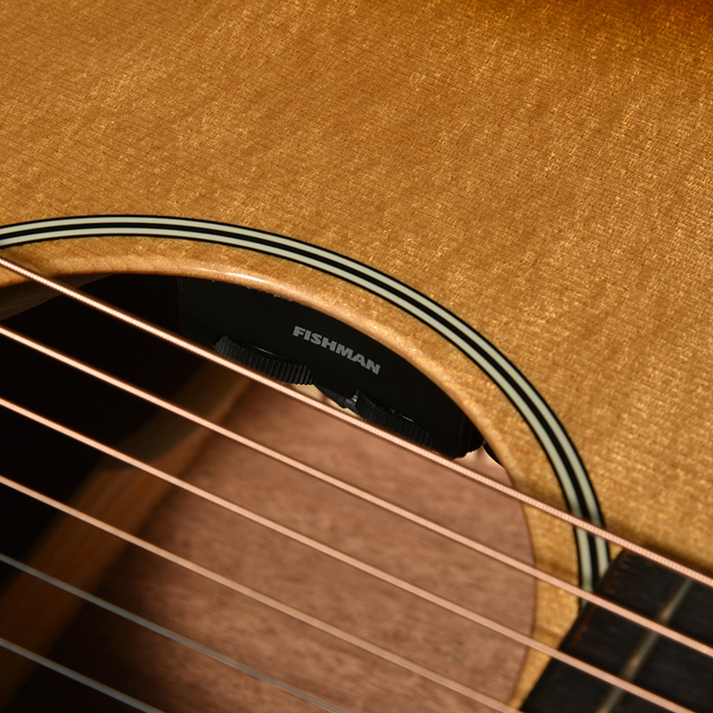 ボディサイドバック材にはサペリを使用し、中音域に甘さがありつつも芯のあるサウンドを響かせます。