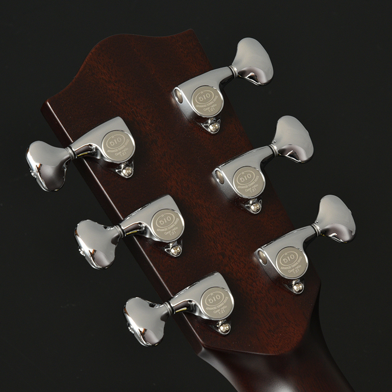 その高い品質によりギターペグのスタンダードとなっている後藤ガット製品の中でも最高品質の フラッグシップモデル、510シリーズのペグを採用。1 : 22のギア比によりスムーズで正確な チューニングを行うことが可能です。滑らかで角の取れたデザインのL5つまみは手に良くなじみます。