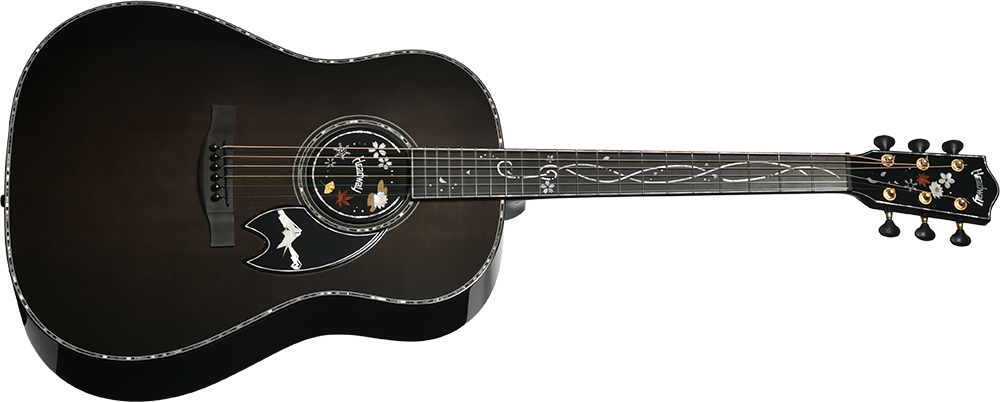 松本平から望む北アルプスの山々の情景をモチーフに、ピックガードへデザインを施しました。