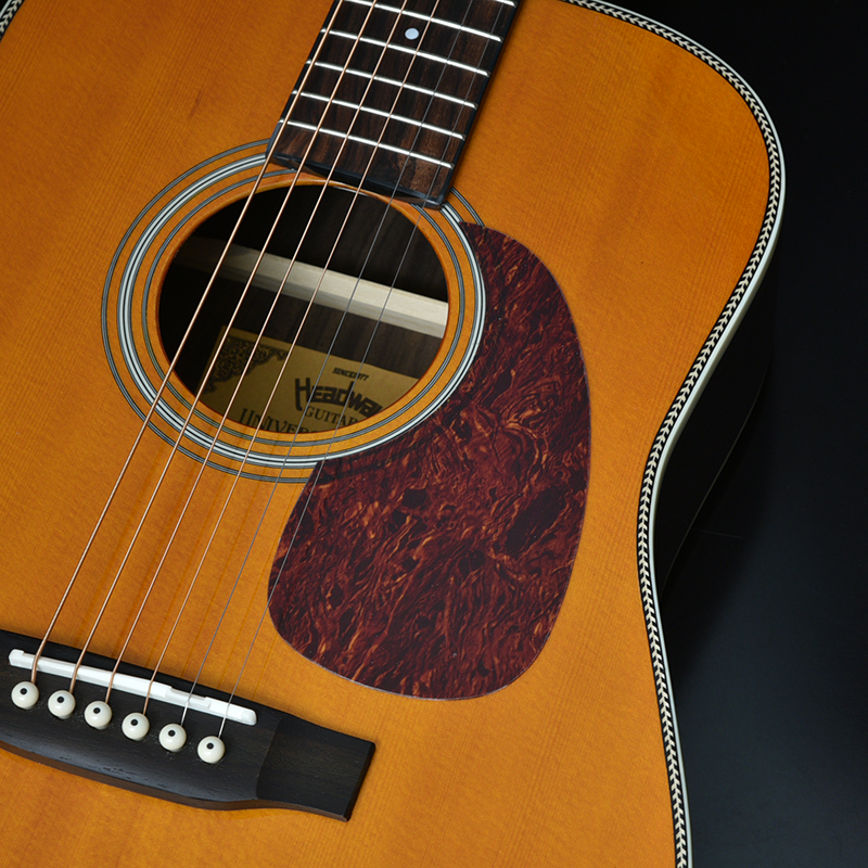 ボディトップ板はスプルース単板、サイドバックはローズウッド合板、ゴールドのペグという仕様で、ヘッドウェイ伝統の「HD-115」を想起させる高級感ある仕上がりです。
