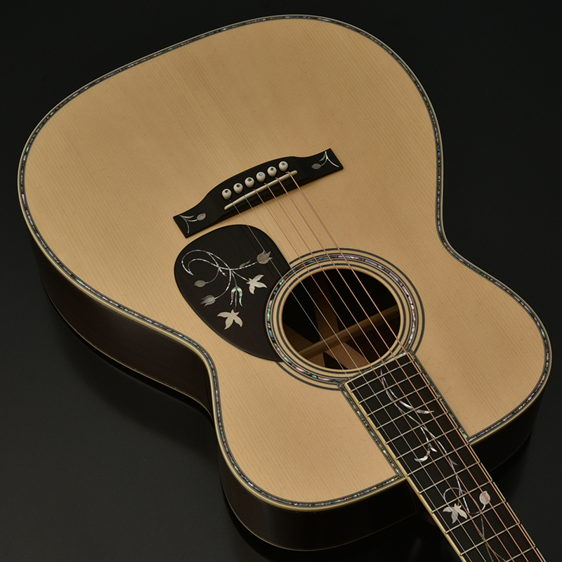 最高級アディロンダックスプルースと最高級マダガスカルローズウッド、3ピースクロスラウンド装飾が施されたセンターピースには贅沢にもハカランダを使用。絢爛豪華なルックスに負けない極上のサウンドを奏でます。スッと声を出すように出る高音と淀みのないクリアで重厚な低中音域が折り重なるリッチで贅沢な音色。ぜひ、最高のサウンドをその目と耳でお楽しみください。