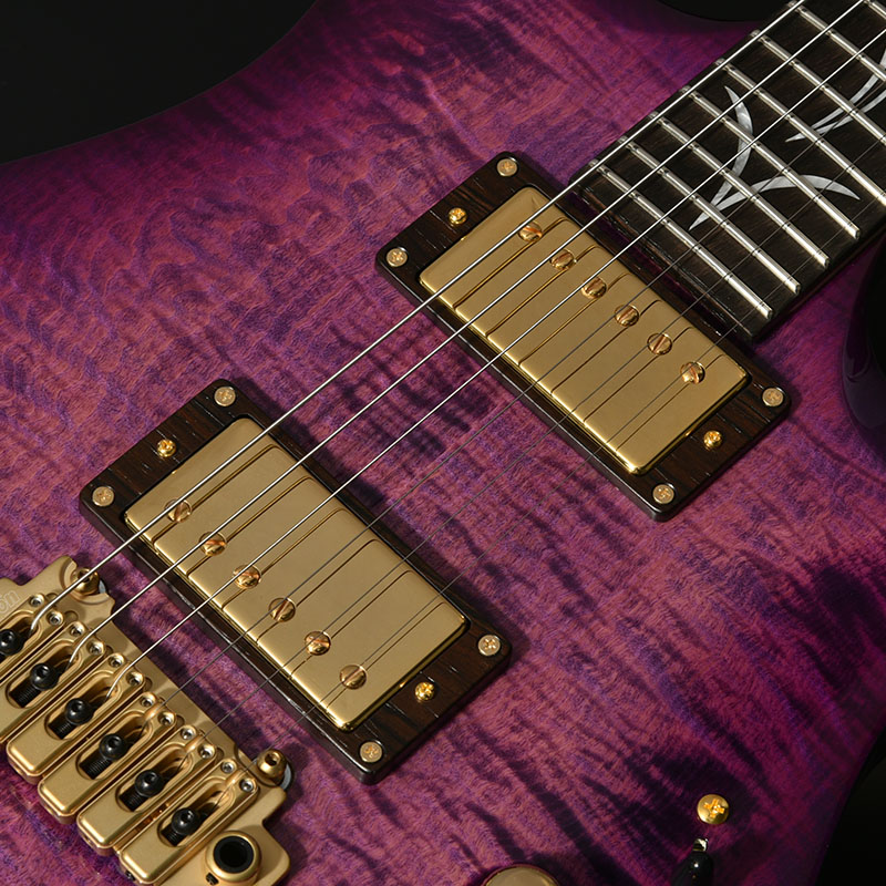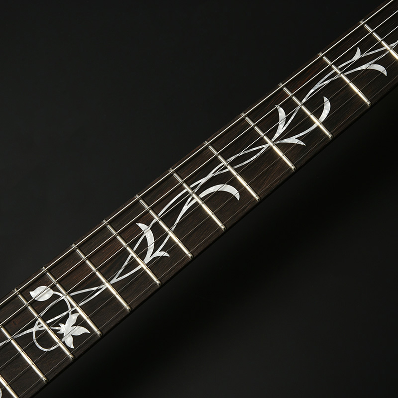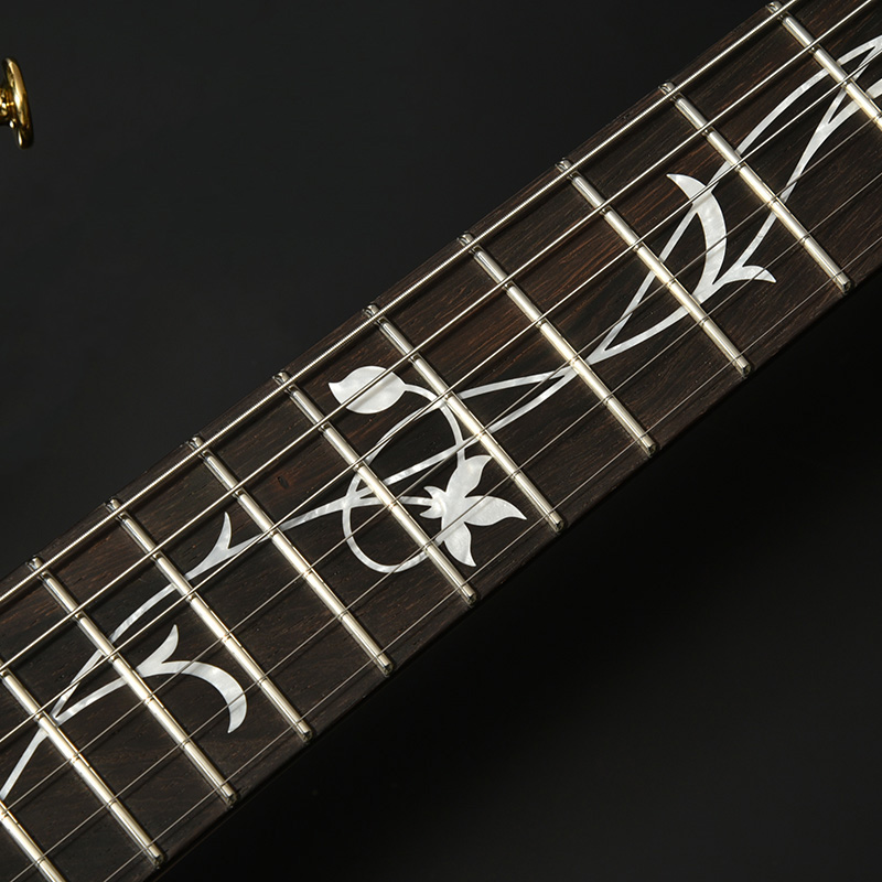 現在最も入手困難な木材のひとつブラジリアンローズウッド(ハカランダ)を指板とピックアップエスカッションに使用しています。指板上にはフラワーインレイが施され、その唯一無二の美しさをさらに際立てています。
