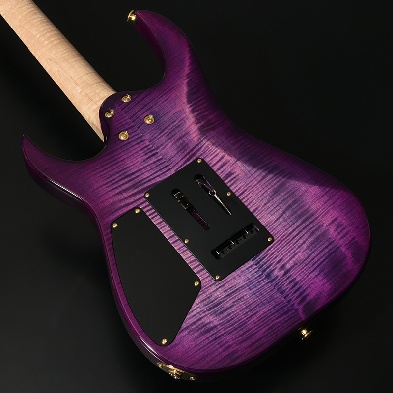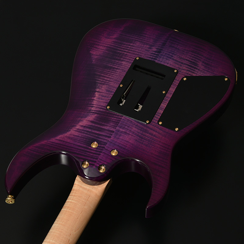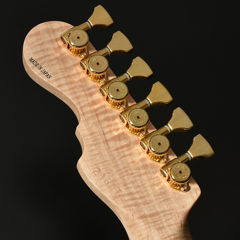 ボディトップ、バックそれぞれに最高グレードのフレイムトチを使用し、その杢目を最大限に生かした美しいバーストカラーでフィニッシュされています。バック材にもトチが用いられていることにより、サウンド面でもその持ち味が発揮され、特徴的な中~高音域にかけて広がる抜けの良いトーンを存分に感じることができます。