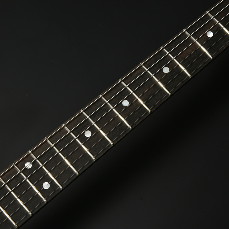 黒々とした高級感のあるルックスでおなじみのエボニー材を採用。定番のローズウッドなどに比べて重量があり、音の立ち上がりが早く輪郭のあるトーンと伸びやかなサスティーンを生み出します。