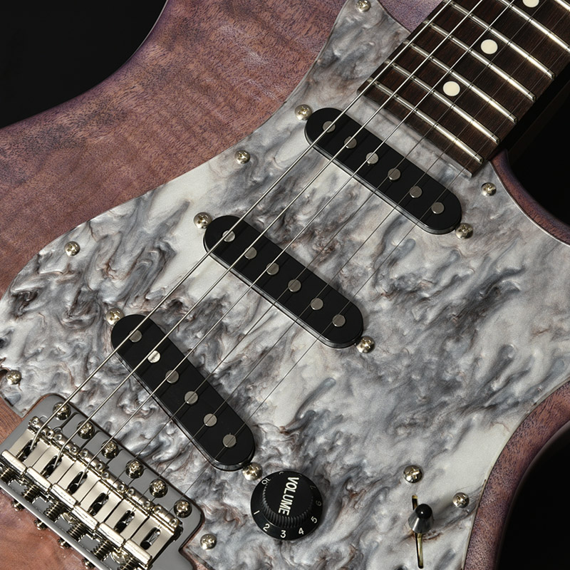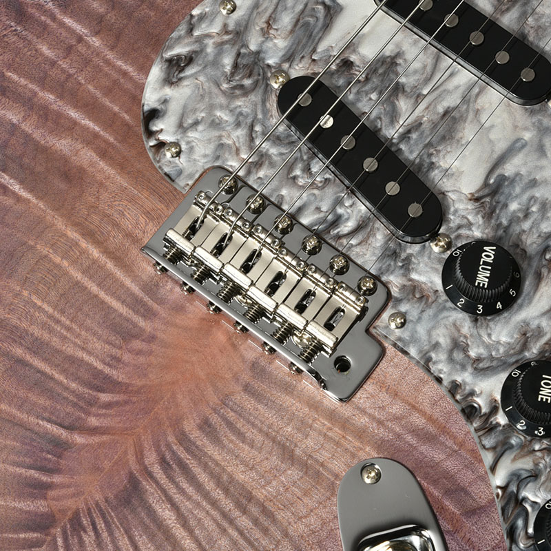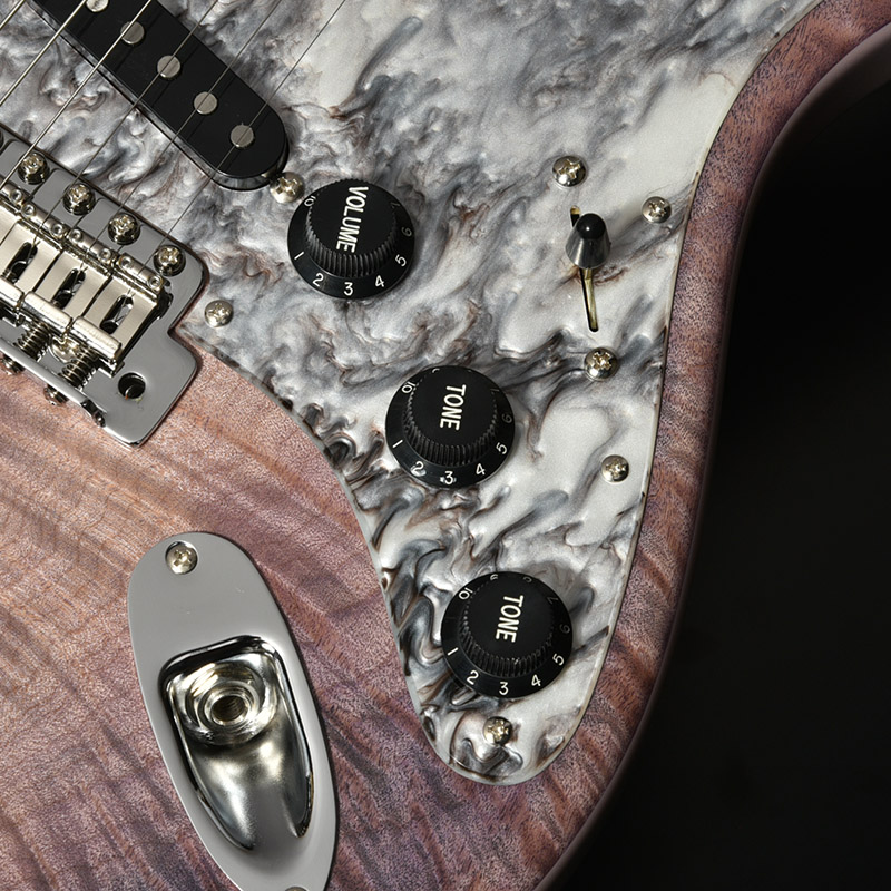トーンウッドの代表格ともいえるのが、このフレイムメイプルです。手に取った瞬間に高級感を感じさせられる佇まいとステージ映え間違いなしのルックスをぜひお確かめください。ボディ本体には定番のアルダー材を採用し、より実践的なサウンドを突き詰めています。