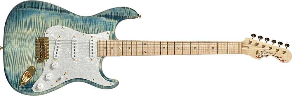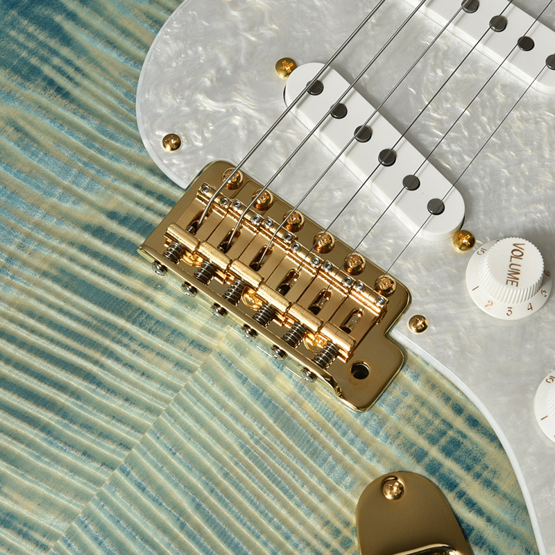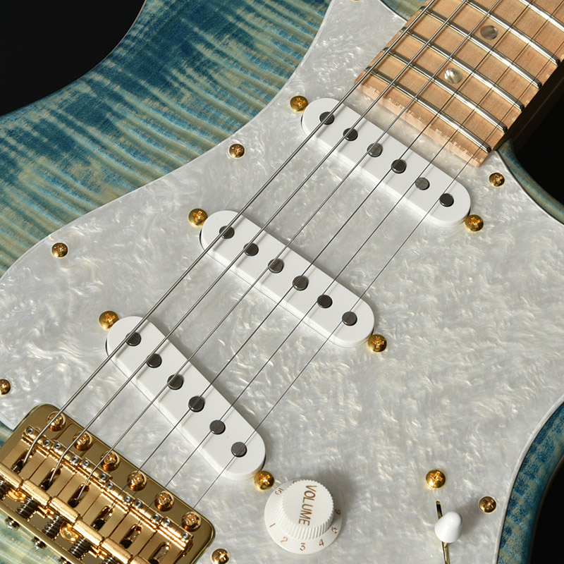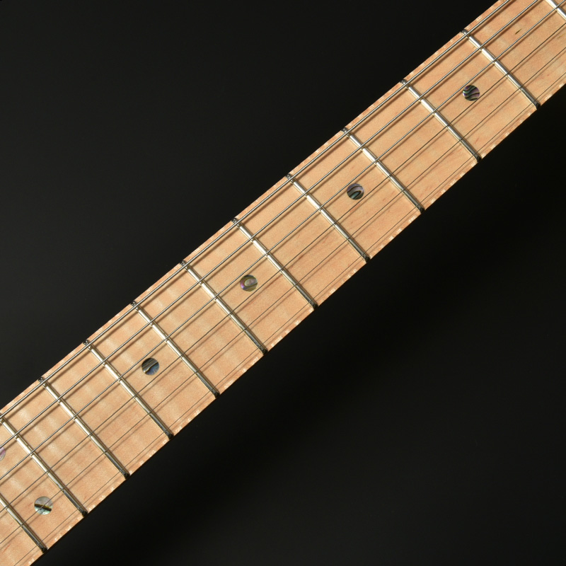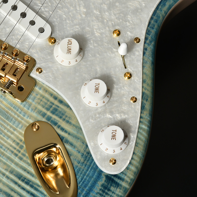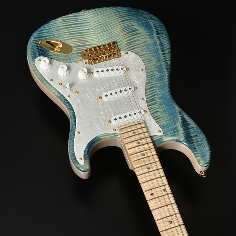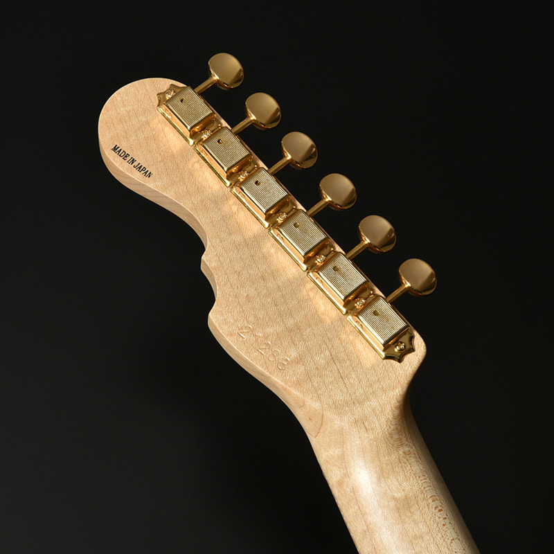 フレイム杢の出た美しいトチ材をボディトップに採用した、福岡ギターショー2025限定仕様モデル。ボディ本体には定番のアルダー材を採用し、より実践的なサウンドを突き詰めました。