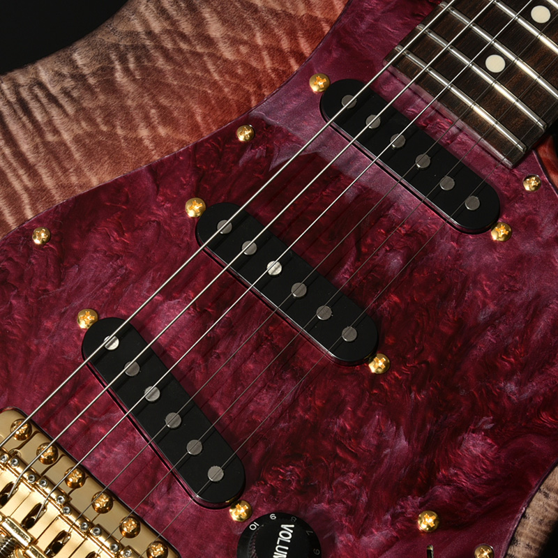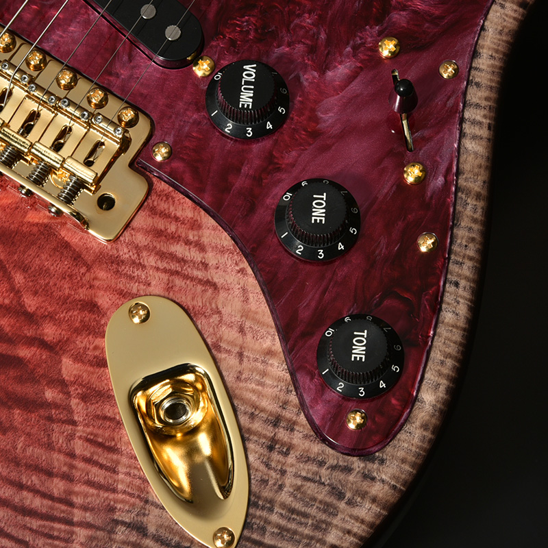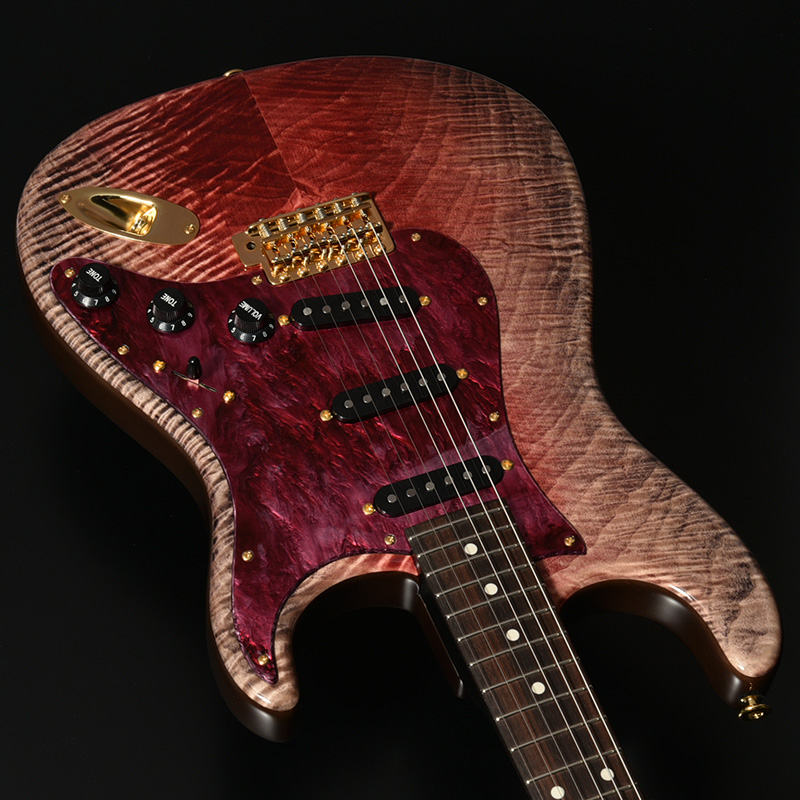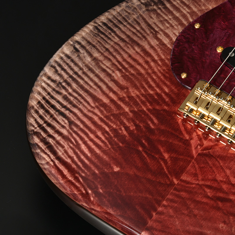 フレイム杢の出た美しいトチ材をボディトップに採用した、福岡ギターショー2025限定仕様モデル。ボディ本体には定番のアルダー材を採用し、より実践的なサウンドを突き詰めました。