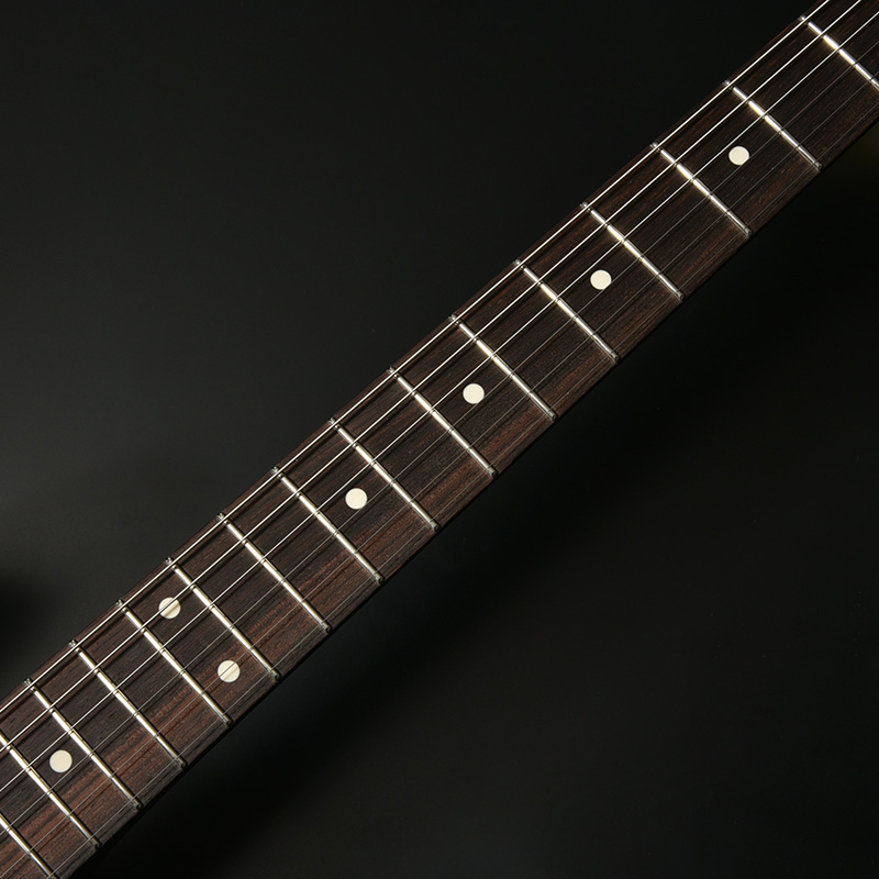 紫檀(したん)の和名を持つローズウッドの一種「インディアンローズウッド」は最もスタンダードな指板材のひとつであり、サウンド面でも実用性の高い仕様となっています。