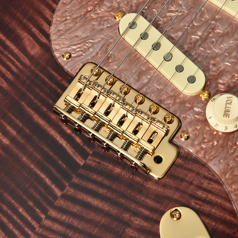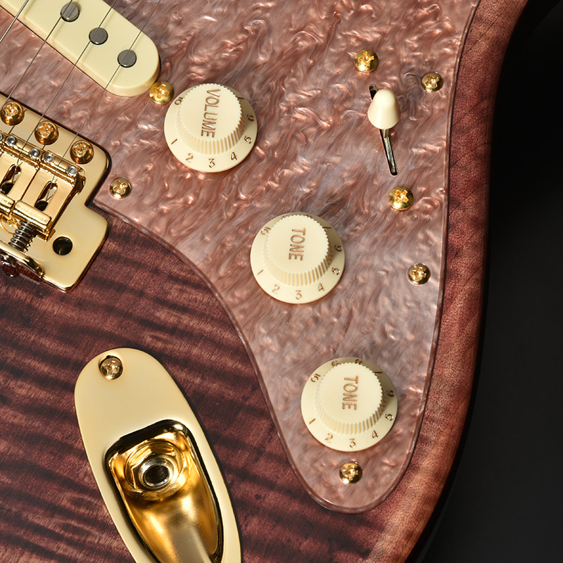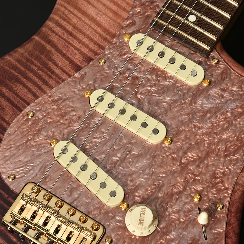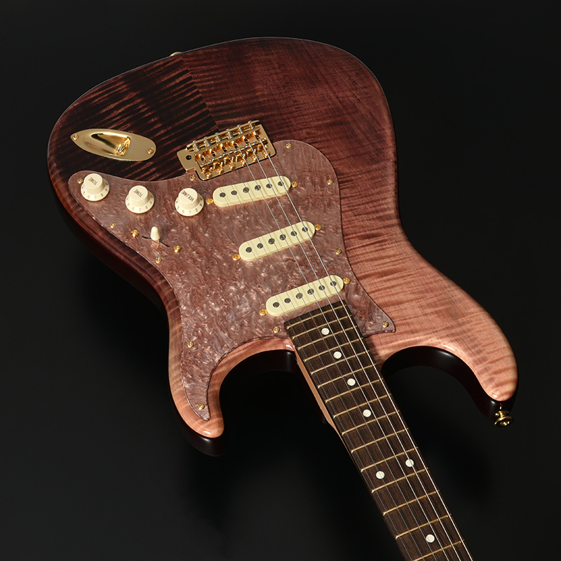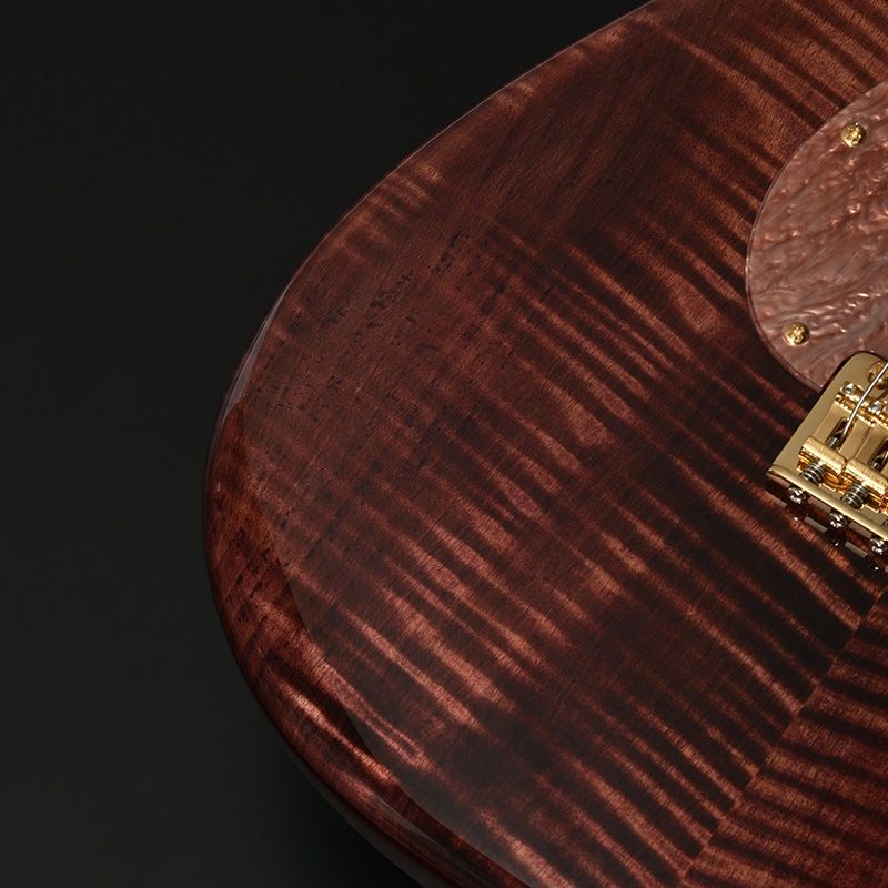 見た目にも美しいフレイム杢の出たトチ材をボディトップに採用した限定モデルが「ギタラバTOKYO2025」に登場!トチは重量も適度でサウンド面ではクセが少なく、中音域から高音域にかけて広がる澄んだ音色が響きます。また、オーバードライブをかけた際の歪みの乗りも良く、ハードな音楽でも存分にその味を楽しむことができます。