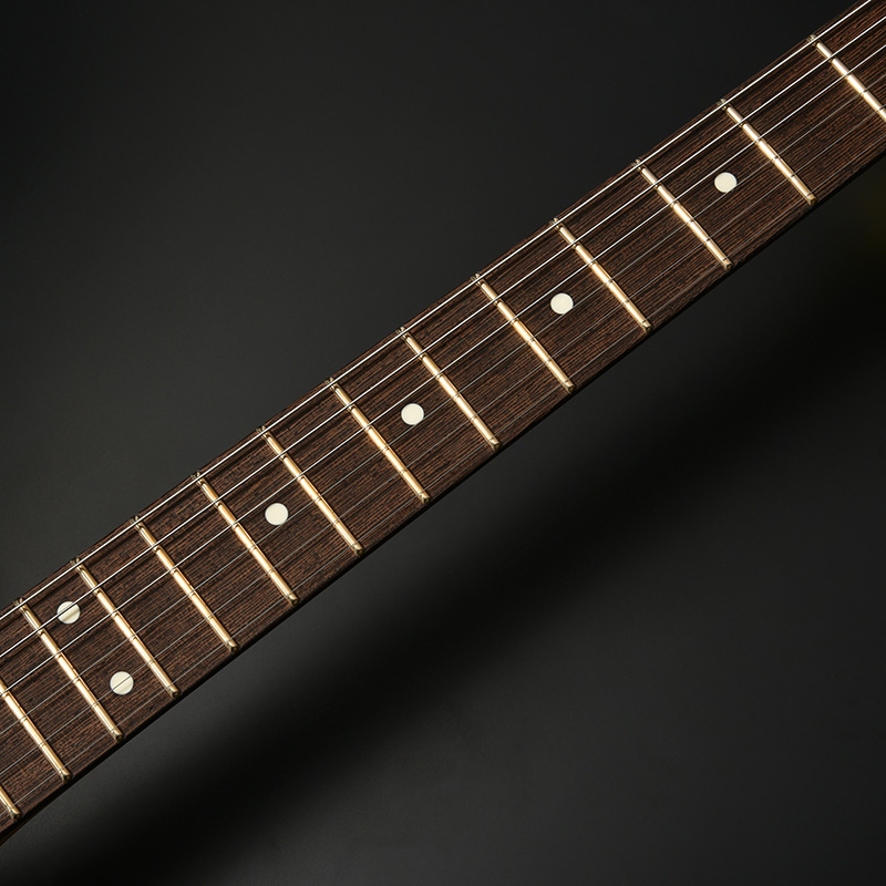 メイプル材などと比べて強度が高く、非常に硬質な特性を持つ「ウェンジ」。指板材に取り入れられることで、安定感のある抜けの良いサウンドを実現します。その美しい見た目から、ヨーロッパでは古くから高級家具材としても使用されてきました。