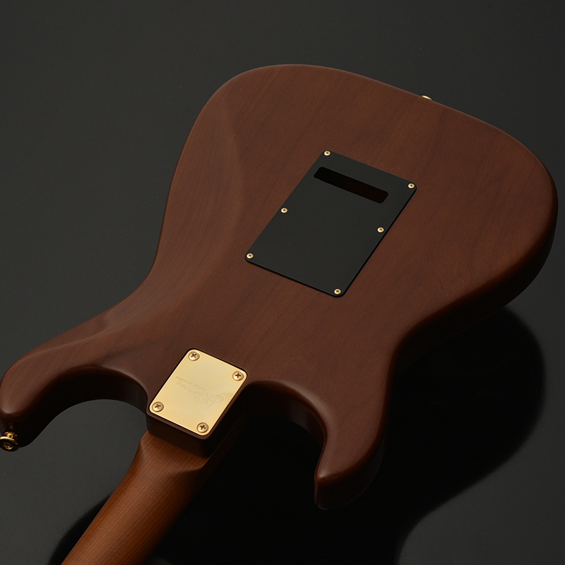 トーンにもこだわっており、アルダー材をボディバックにバールメイプル材を組み合わせることで、アルダー材の持ち味であるミドルレンジを中心にバールメイプル材の持ち味であるアタック感が加わりサウンドを引き締めています。ネックにはサーモメイプル材を採用しており、ネックの安定性はもちろんのこと、乾いたトーンがボディ材とも相性良く本モデルのトーンを作り上げます。