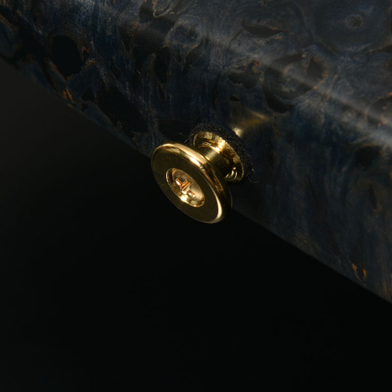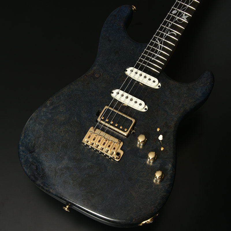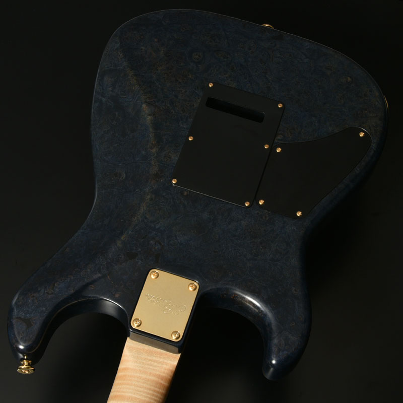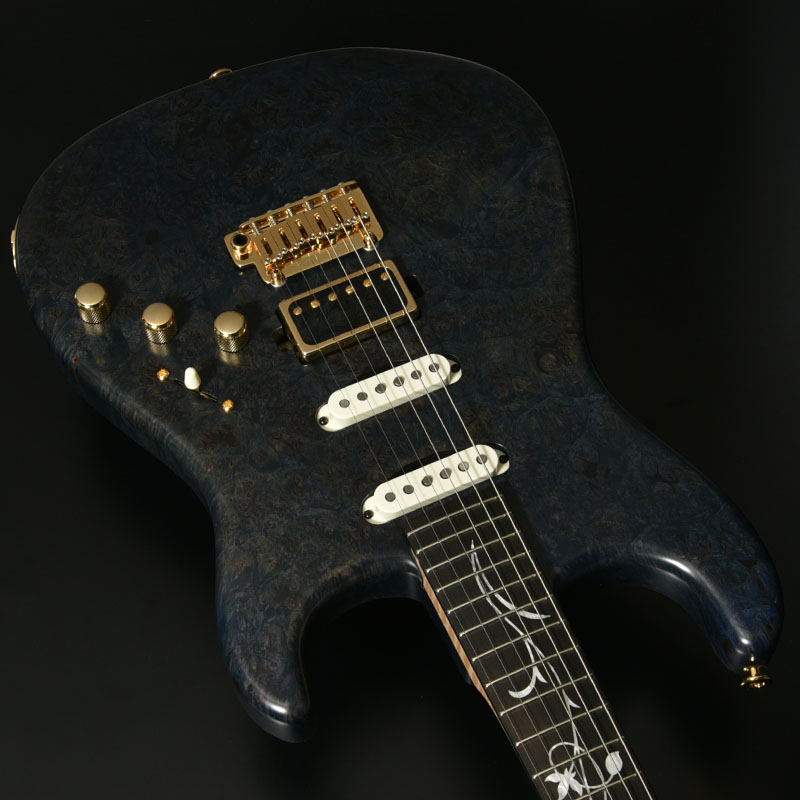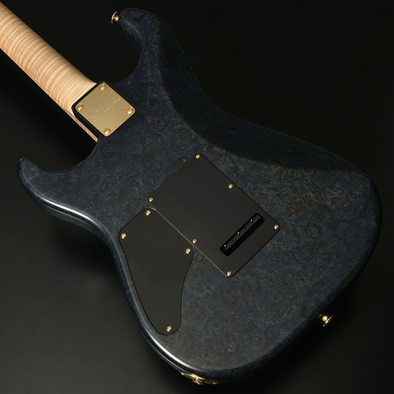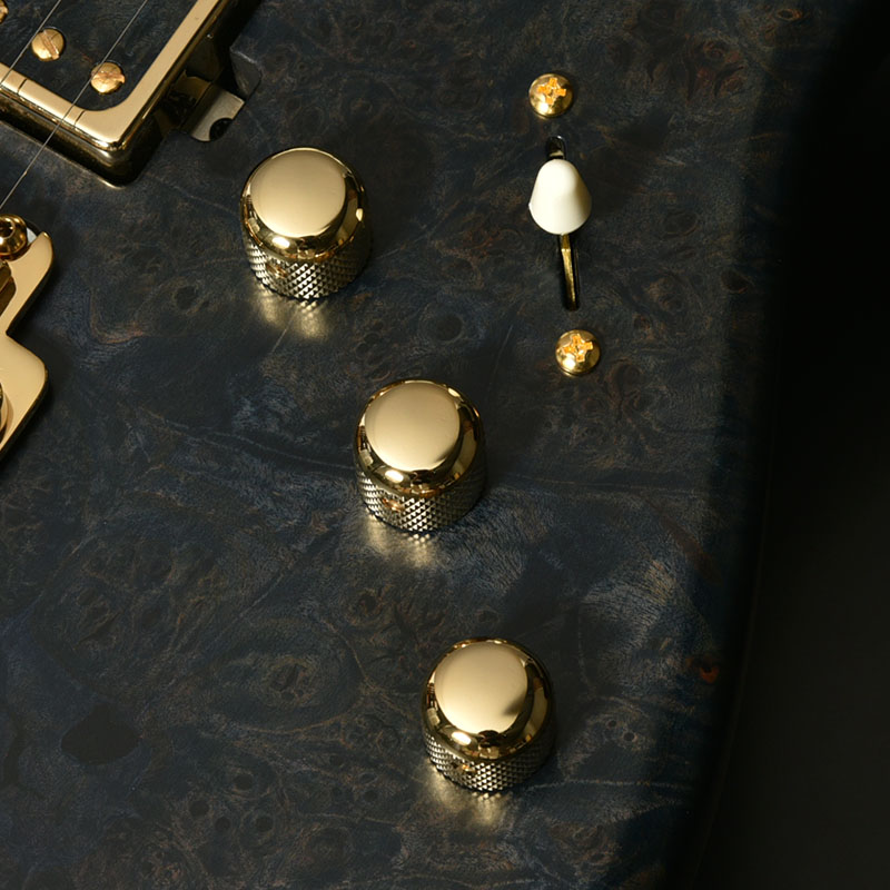 「バール (Burl)」とは、樹木が生育する過程で幹の根元にできたコブの部分のことを指します。すべての木々に現れるわけではなく、その個性的な見た目と希少性から貴重な木材として取引されています。本モデルはその杢目を余すことなくご堪能いただけるよう、ピックガードを廃した仕様となっています。