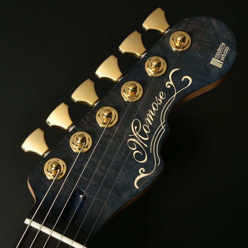 シリーズ名に含まれる『Virtuoso』とは芸術の(特に音楽の)名人、名手、大家、巨匠、という意味を持つ英語です。誰もが自分の音楽を表現し、発信できるようになった現代に求められる仕様を、Momose独自の解釈により盛り込みました。Hipshot® Glip-Lockペグの搭載やGOTOH®製のアーミングに優れたブリッジの新採用など、ハードウェアも一新されています。