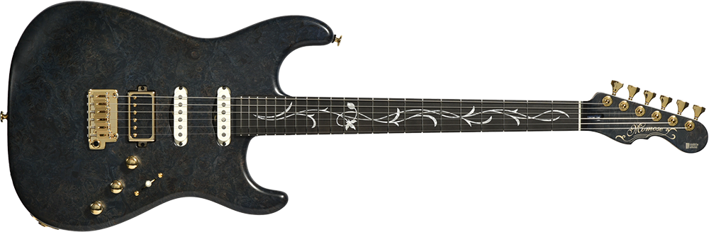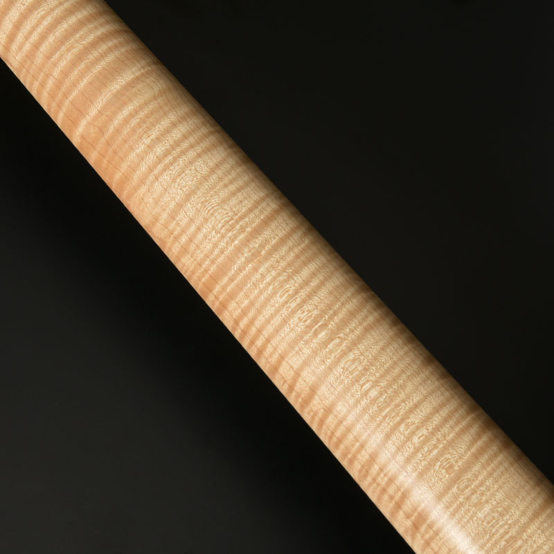 ツリーオブライフのインレイが施された指板には、黒々とした高級感のあるルックスでおなじみのエボニー材を採用。定番のローズウッドなどに比べて重量があり、立ち上がりが早く輪郭のあるトーンと伸びやかなサスティーンを生み出します。ネック材の柾目フレイムメイプルは、ヘッドストックの先端までストライプの入ったハイグレードな個体を厳選。芸術的なルックスをぜひその目でお確かめください。