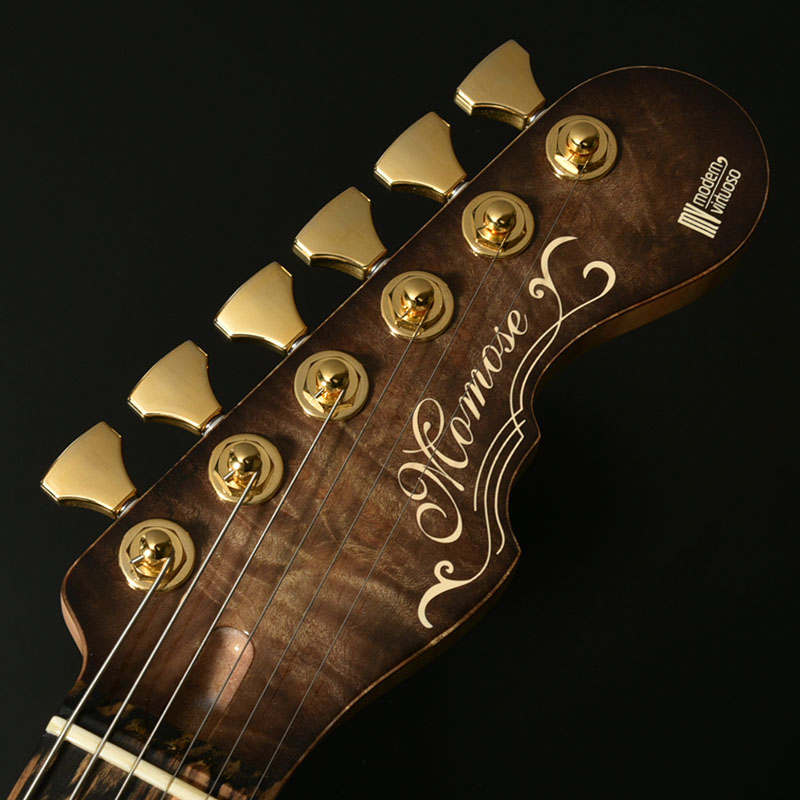 シリーズ名に含まれる『Virtuoso』とは芸術の(特に音楽の)名人、名手、大家、巨匠、という意味を持つ英語です。誰もが自分の音楽を表現し、発信できるようになった現代に求められる仕様を、Momose独自の解釈により盛り込みました。Hipshot® Glip-Lockペグの搭載やGOTOH®製のアーミングに優れたブリッジの新採用など、ハードウェアも一新されています。