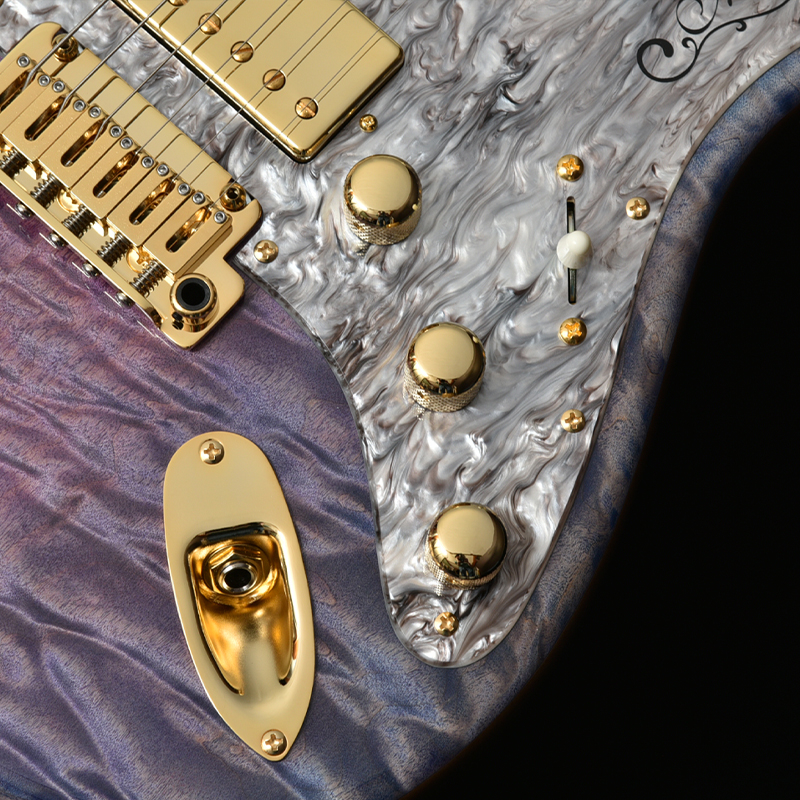 飛鳥工場の木材ストックより厳選されたハイグレードのフレイムメイプルを使用。限定モデルにふさわしいゴージャスなルックスがプレイヤーの手元を華やかに彩ります。