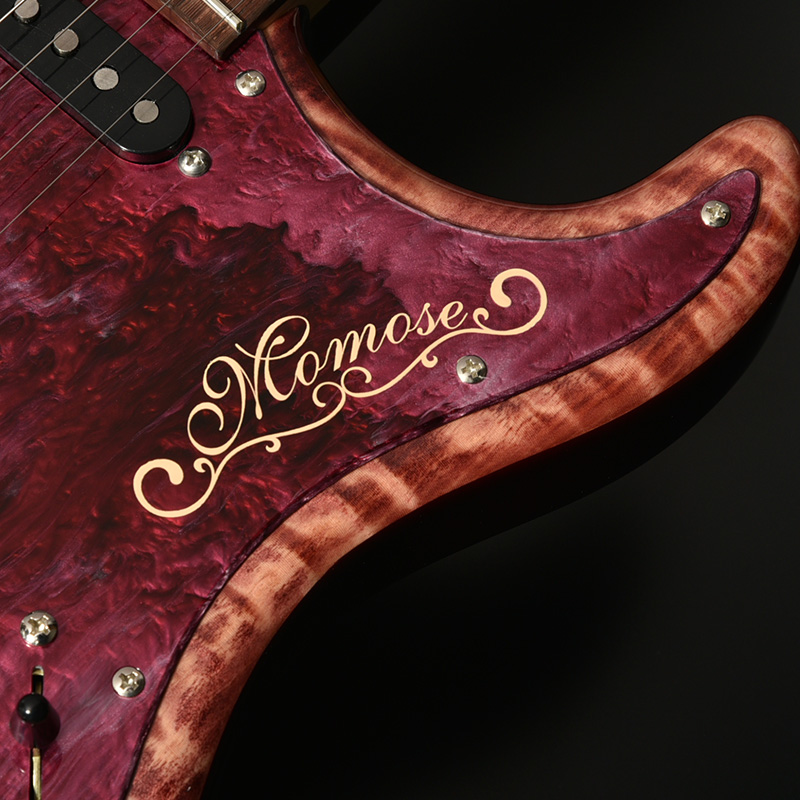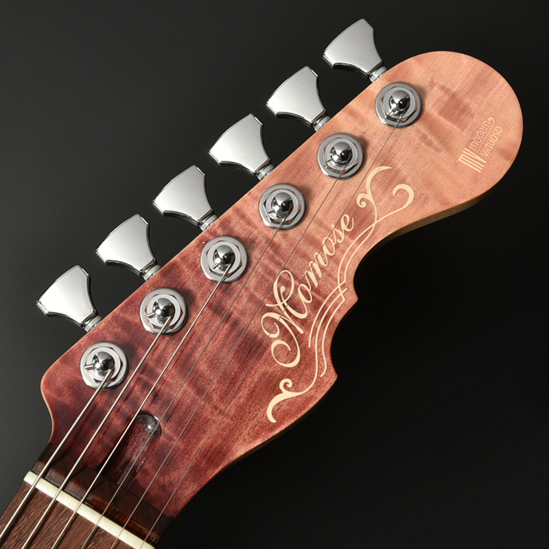 シリーズ名に含まれる『Virtuoso』とは芸術の(特に音楽の)名人、名手、大家、巨匠、という意味を持つ英語です。誰もが自分の音楽を表現し、発信できるようになった現代に求められる仕様を、Momose独自の解釈により盛り込みました。Hipshot® Glip-Lockペグの搭載やGOTOH®製のアーミングに優れたブリッジの新採用など、ハードウェアも一新されています。