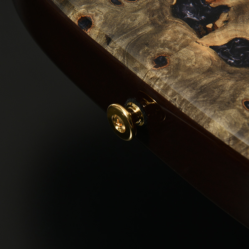 バックアイバールが自然に生み出した形を利用してレジン処理を施した、ハイブリッドモデルとも言える逸品。バール杢の魅力を最大限に引き立て、他に類を見ない独特のルックスを堪能いただける1本に仕上げました。
