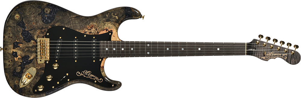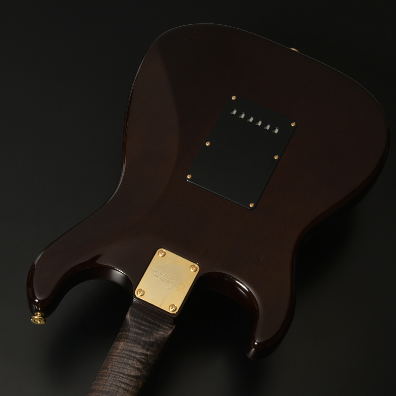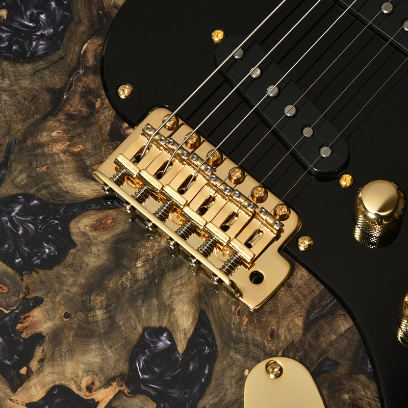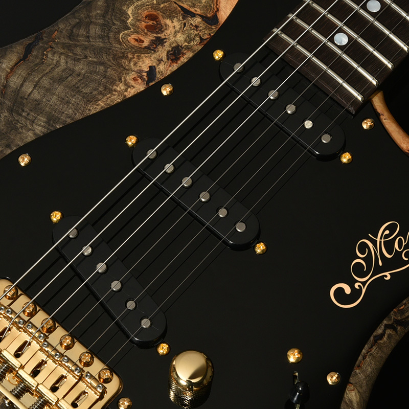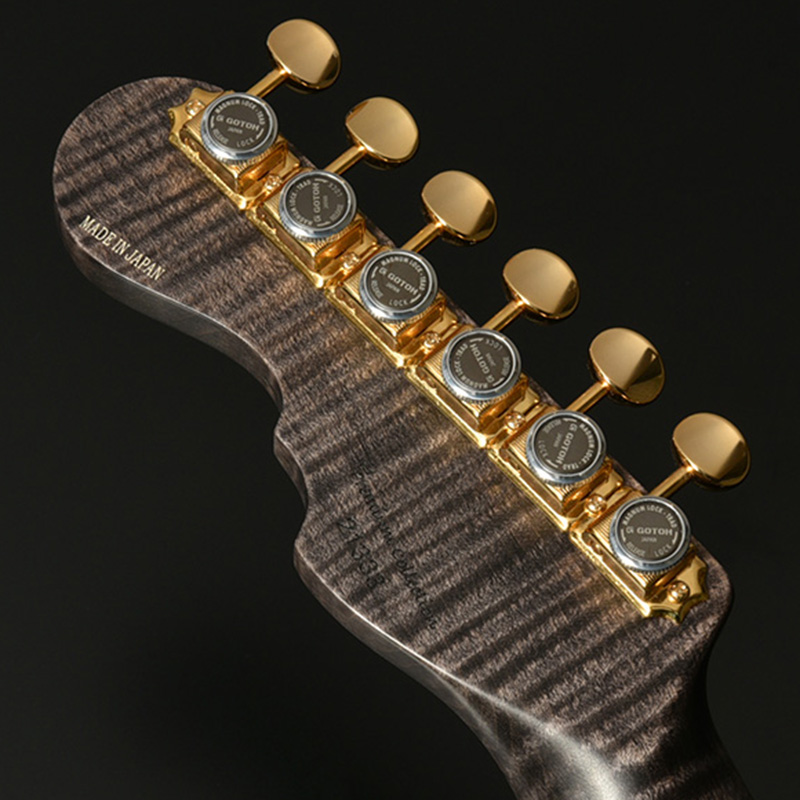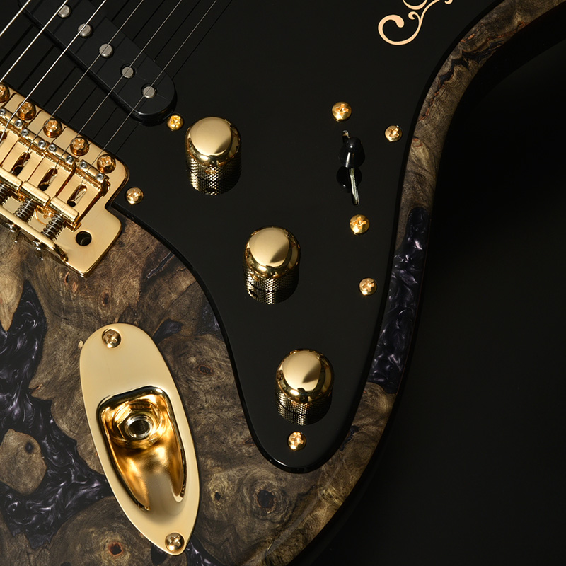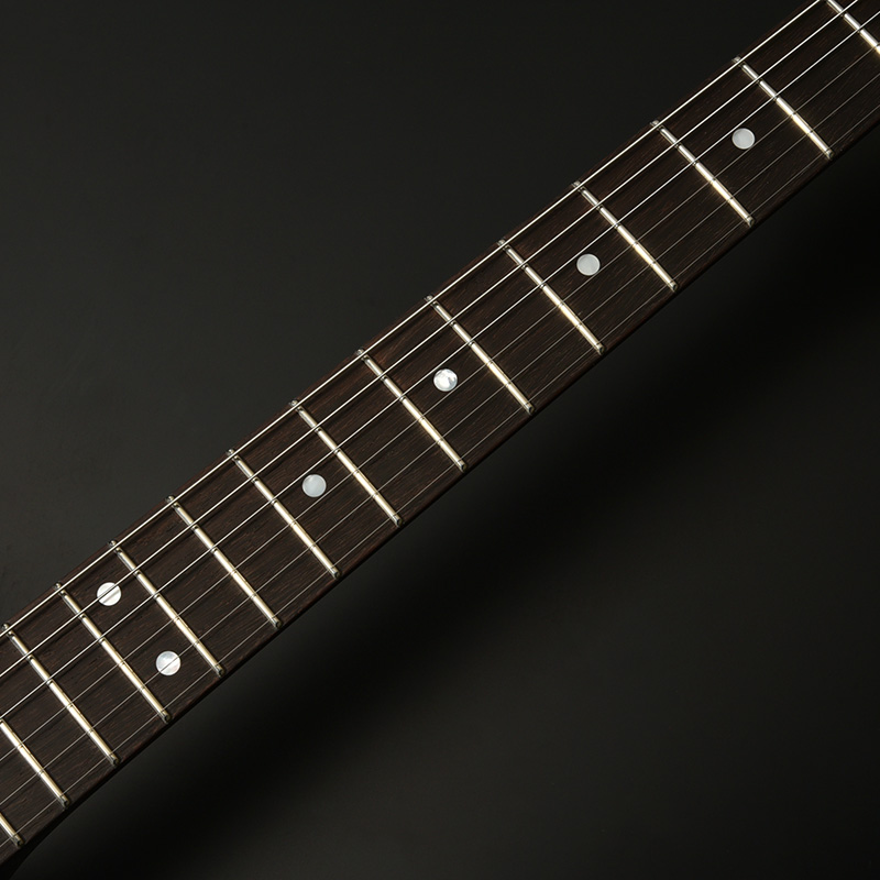 近年のその需要に対して希少性を増している、マダガスカルローズウッドを指板に採用。レギュラー製品では採用を終了しており、本数限定製作のショーモデルだからこそ実現した仕様となります。ネック材のフレイムメイプルは、ヘッドストックの先端までストライプの入ったハイグレードな個体を厳選。芸術的なルックスをぜひその目でお確かめください。