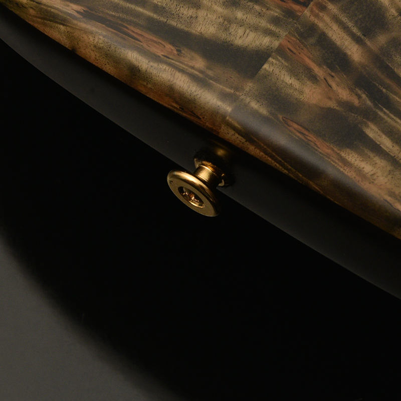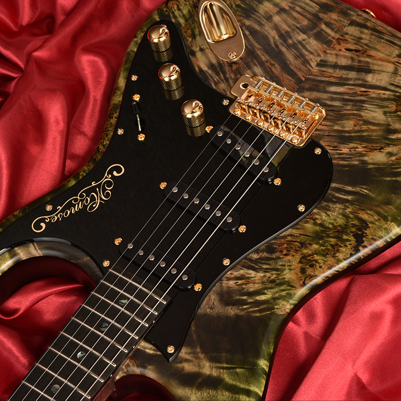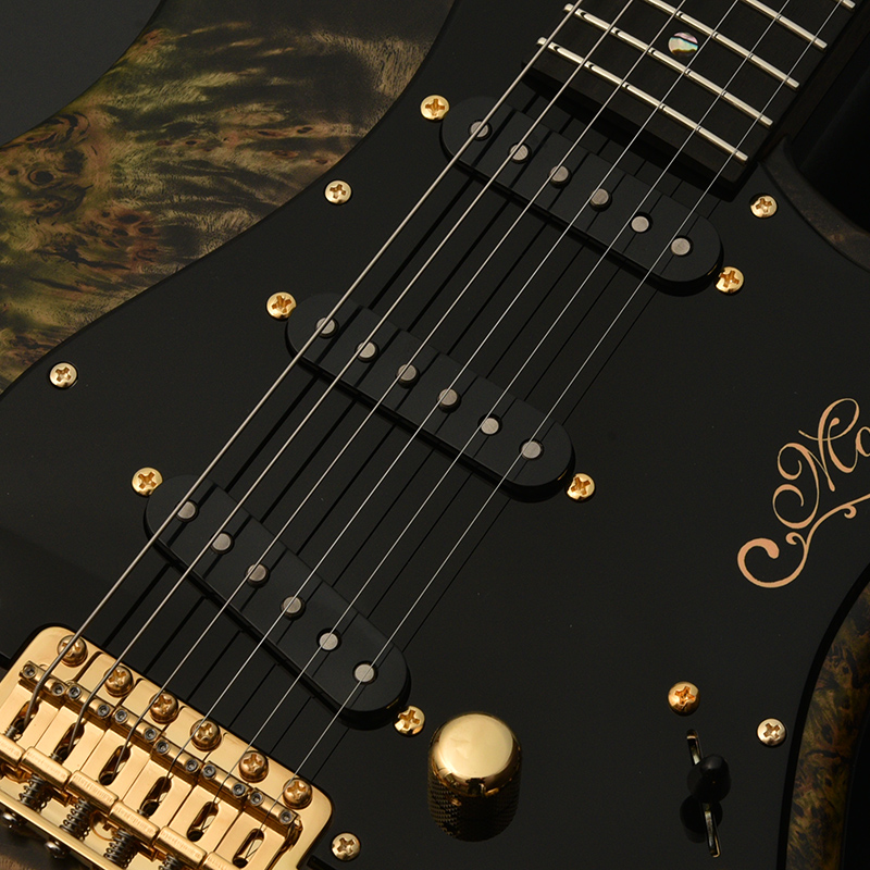 「バール (Burl)」とは、樹木が生育する過程で幹の根元にできたコブの部分のことを指します。すべての木々に現れるわけではなく、その個性的な見た目と希少性から貴重な木材として取引されています。熟練の技によって仕上げられた一点物のルックスは、一目で虜にされること間違いなし!1Pアッシュボディが組み合わせられ、アタック感のあるサウンドをお楽しみいただけます。