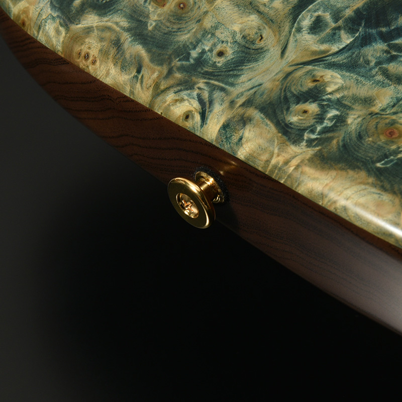 本イベント用に厳選されたバーズアイ・メイプルを採用。ハードメイプル種の中でもごく稀に見つかる希少性の高い木材で、自然が生み出したその装飾には唯一無二の美しさを感じさせられます。