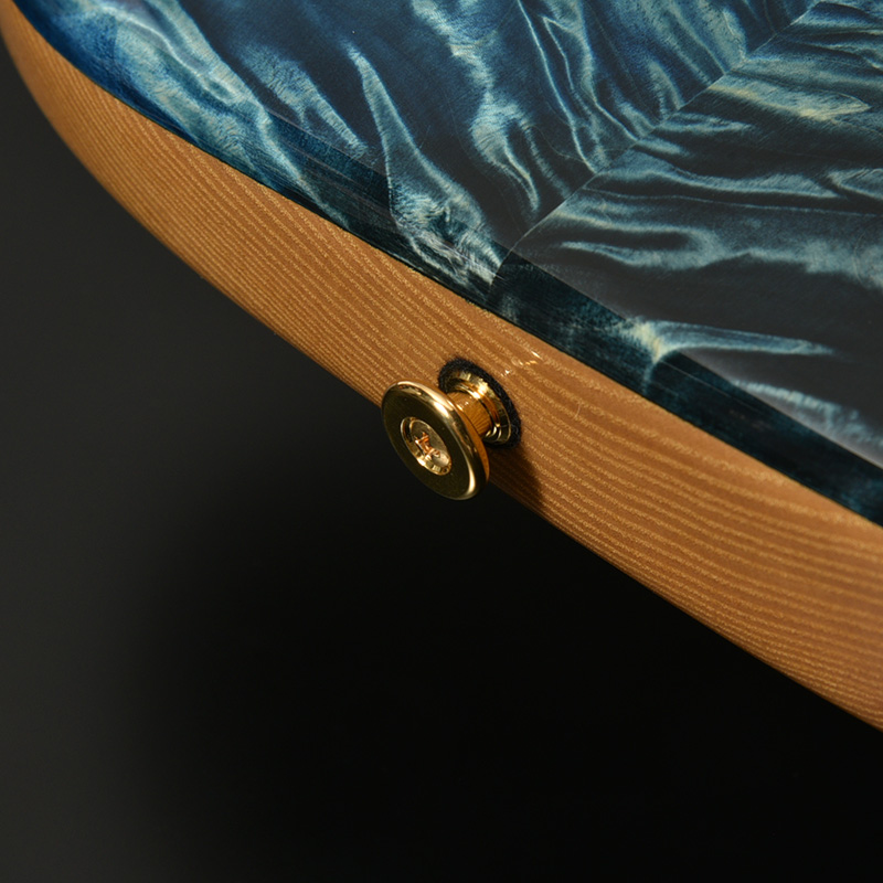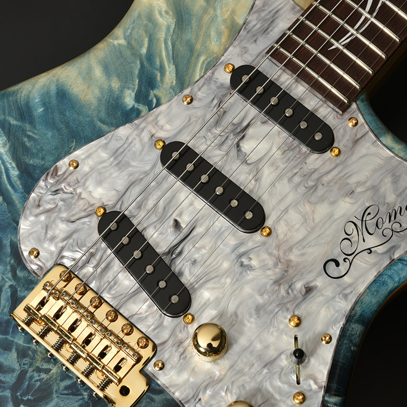トチは東日本を中心に広く分布し、銘木と評される高級和材の一つです。杢目の出た美しい木肌は塗装映えも素晴らしく、カラーリングによって様々な表情を見せてくれます。本体カラーとマッチしたアクリルピックガードにより、統一感のあるデザインを生み出しました。