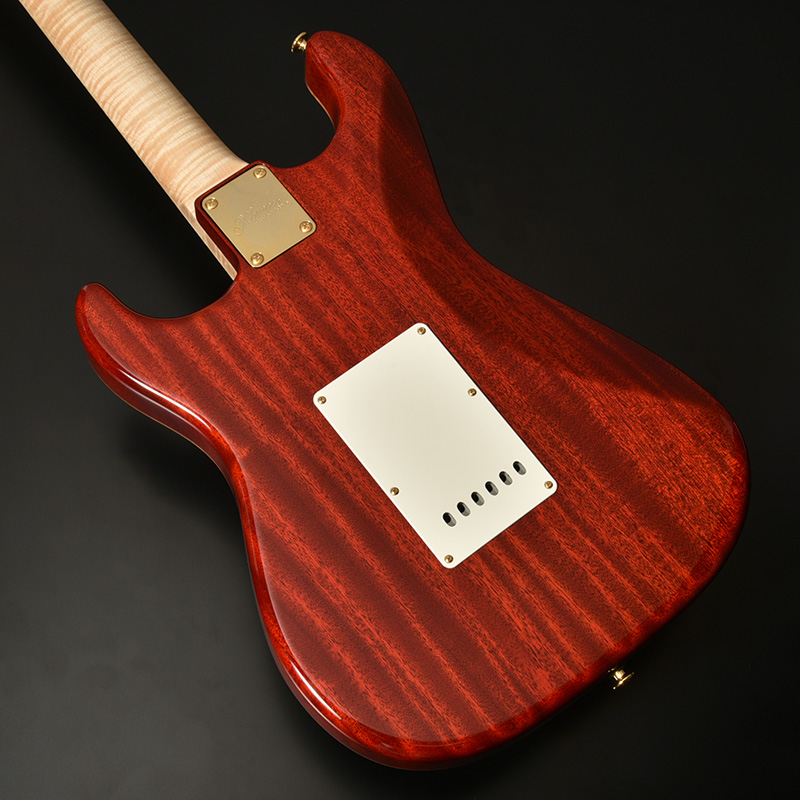 トチは東日本を中心に広く分布し、銘木と評される高級和材の一つです。杢目の出た美しい木肌は塗装映えも素晴らしく、カラーリングによって様々な表情を見せてくれます。本体カラーとマッチしたアクリルピックガードにより、統一感のあるデザインを生み出しました。
