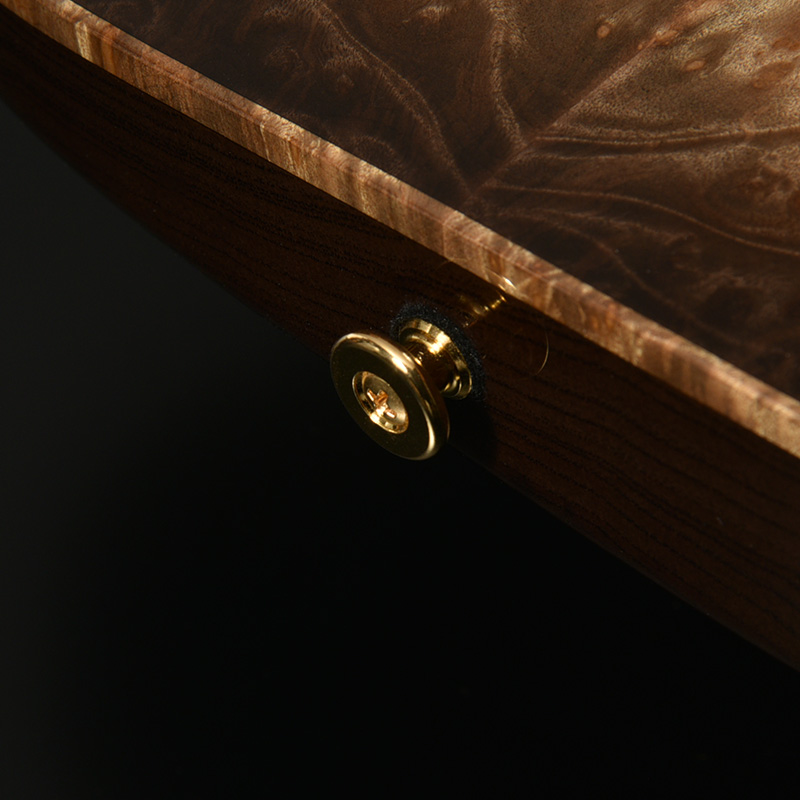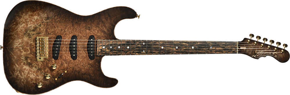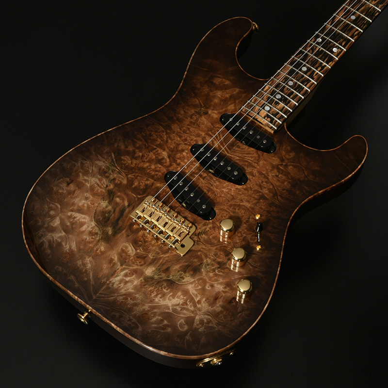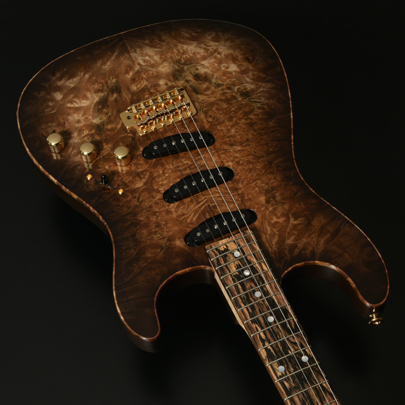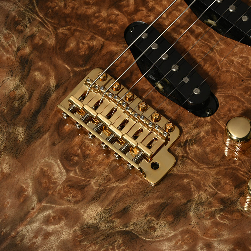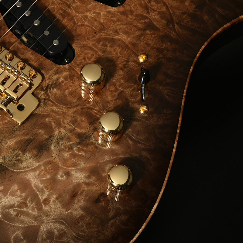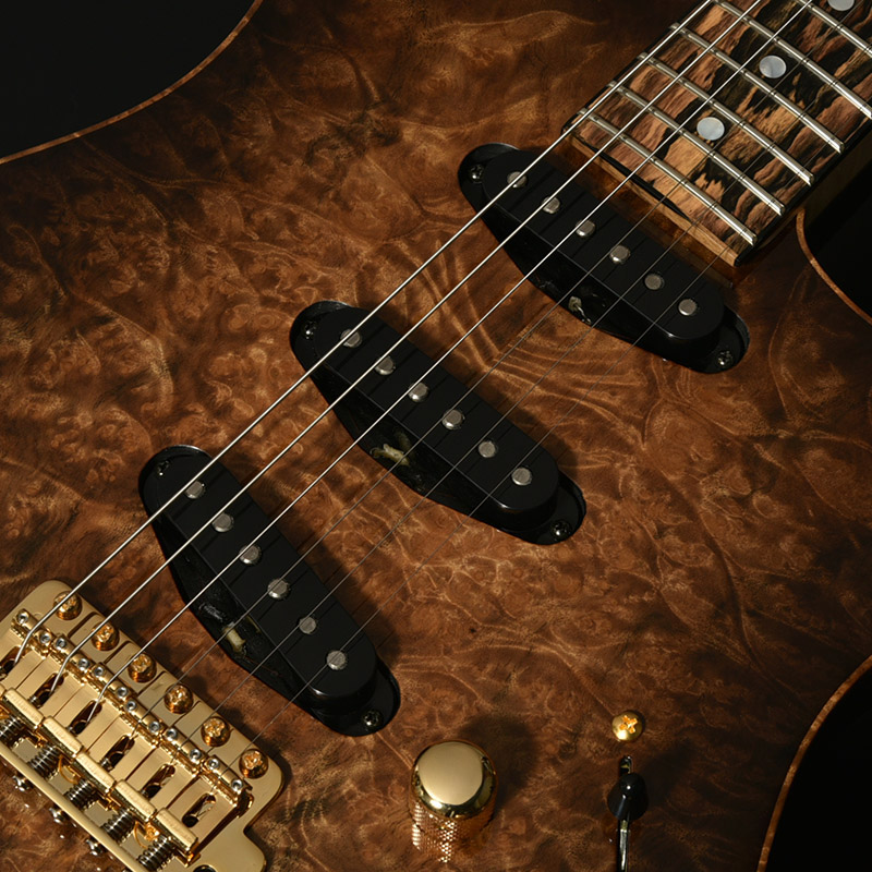 ボディトップには南米を原産とし、独特な杢目が特徴のマーブルウッドを採用。バール杢ともよく似たルックスで、抜群の存在感を放ちます。ボディ本体には近年需要に対してその数を減らしているアッシュ材を贅沢にも1ピースで使用し、プレミアムコレクションにふさわしい豪華な仕様としています。