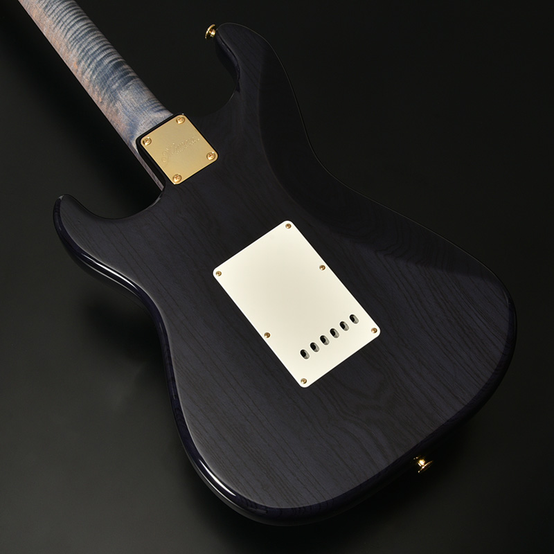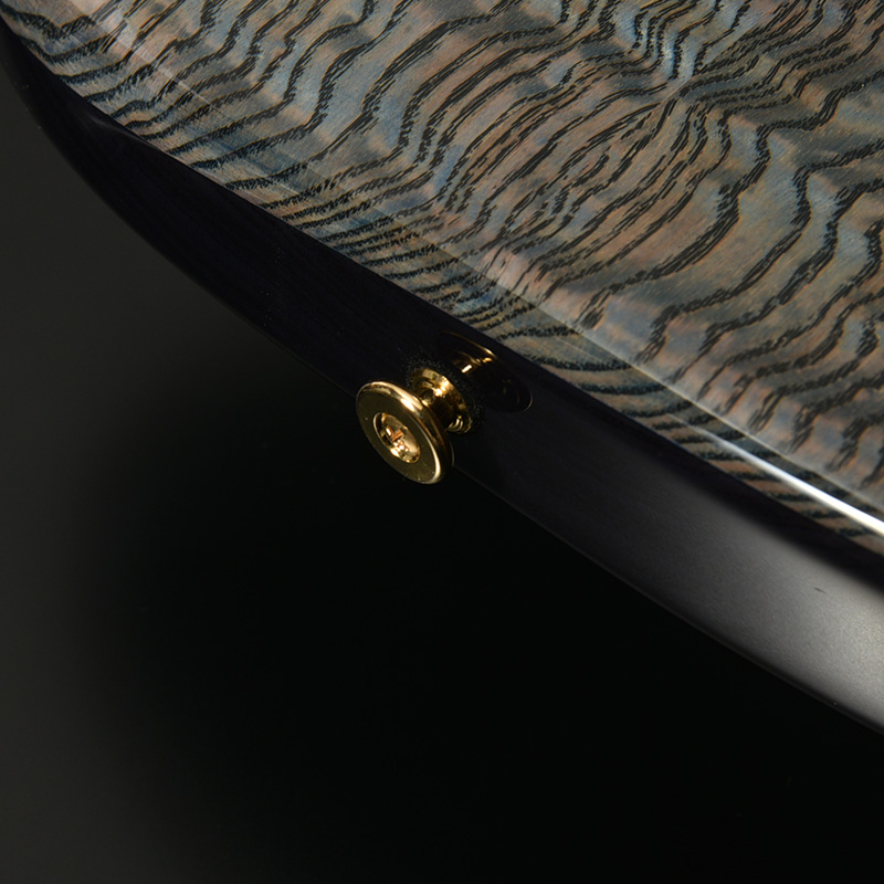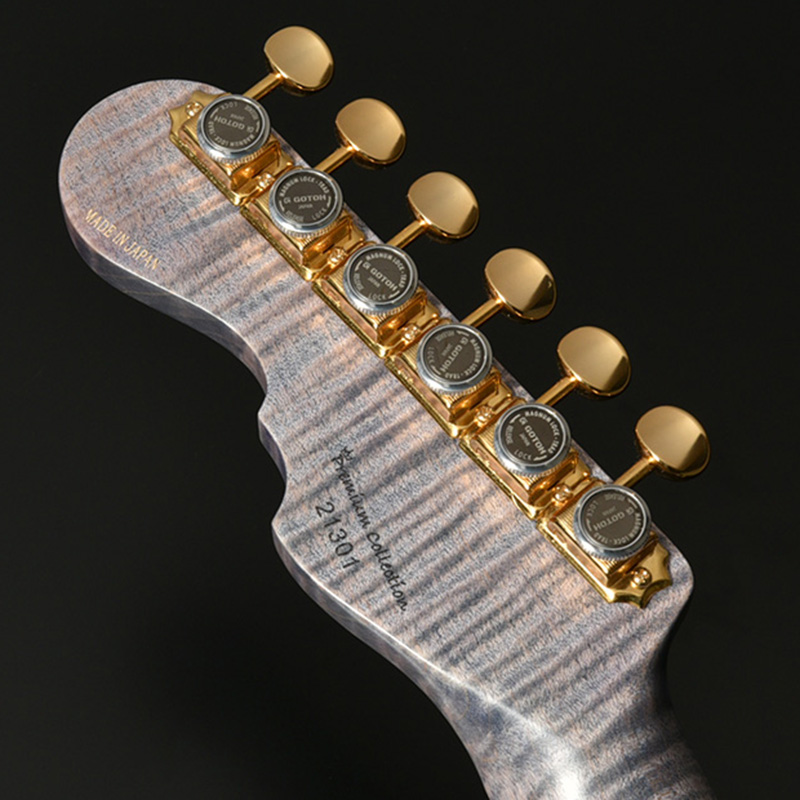 近年のその需要に対して希少性を増している、マダガスカルローズウッドを指板に採用。レギュラー製品では採用を終了しており、本数限定製作のショーモデルだからこそ実現した仕様となります。ネック材のフレイムメイプルは、ヘッドストックの先端までストライプの入ったハイグレードな個体を厳選。芸術的なルックスをぜひその目でお確かめください。