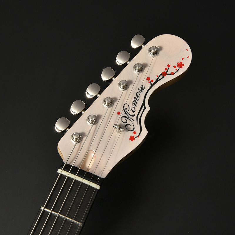 桜の花びらと雪の結晶をモチーフにしたインレイ。春と冬という異なる季節の象徴がひとつの指板上で調和し、幻想的な風景を描き出します。それぞれをポジションマークの位置に配置することで、視認性と実用性を兼ね備えたデザインとなっています。