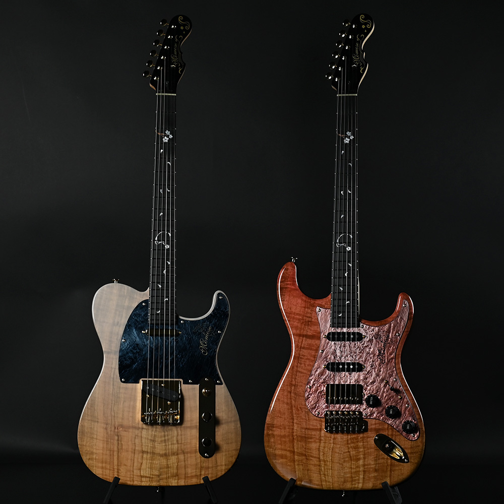 木々各々の個体が持つ杢目により、すでに2本とない見た目であることはもちろんですが、本ラインナップでは異なるカラーリングやピックガードの組み合わせによって、世界にたった1つの楽器としてお楽しみいただけます。