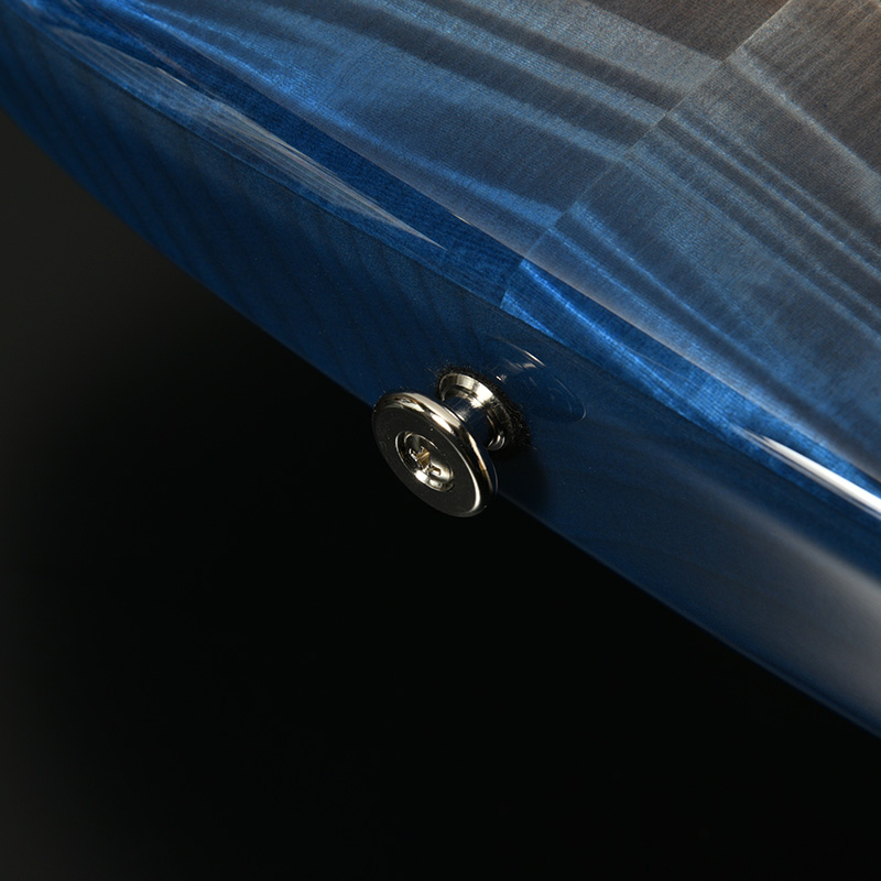 今回のモデルでは、数々の材を塗り分けて来た塗装の職人がトチ材の杢目を生かす為、杢目を立てる木地着色と色合いを乗せる中間着色を絶妙に使い分け仕上げました。トチ材が持つ杢目の魅力とサウンドを存分にご体感ください。