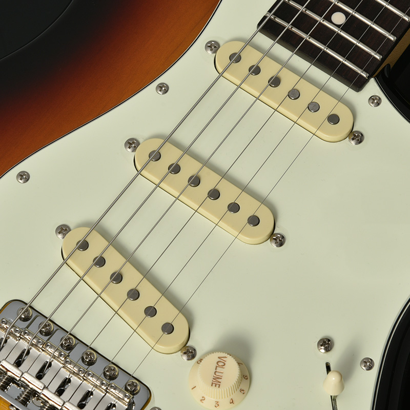 2026年のMomose製品のリニューアルに伴い、新たに開発されたピックアップ”Awake”を搭載。フロントとセンターポジションには甘い高域と自然なトーンを生み出すアルニコ4マグネットを使用する一方、細い音質になりがちなリアポジションにはパワフルでエッジの効いたサウンドを求めて、アルニコ5マグネットを使用。それぞれのポジションにおける「求められるサウンド」を志向しながら、統一感が出るようにバランスを調整し、その名の通り演奏者の表現力と創造性を目覚めさせるようなイメージを備えたピックアップです。