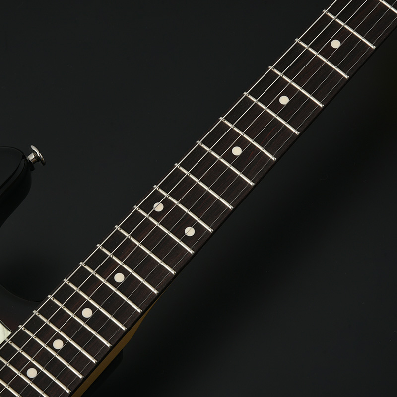 指板サイドには指板と同材を使用したウッドバインディングが施されています。これにより指板サイドが非常に滑らかになるほか、フレットのバリが飛び出してしまうようなトラブルも防止します。