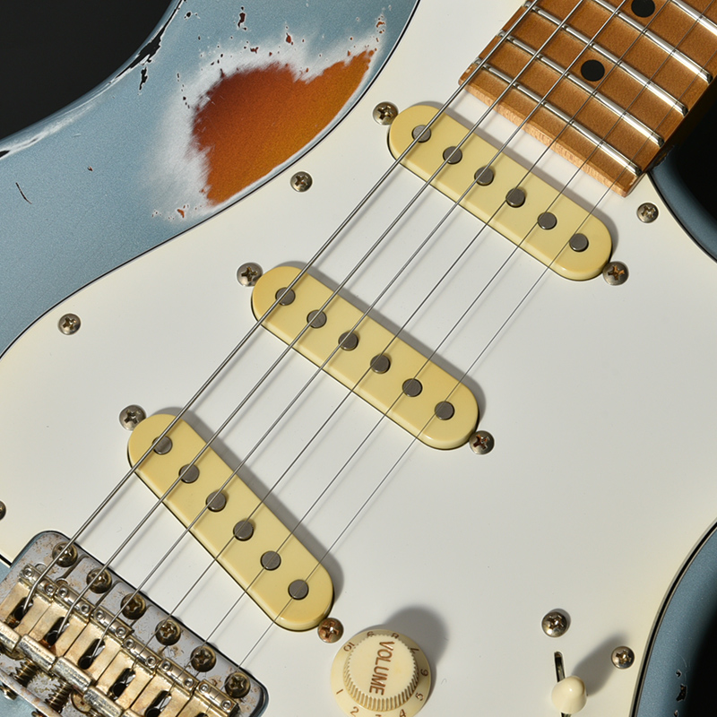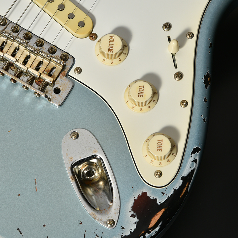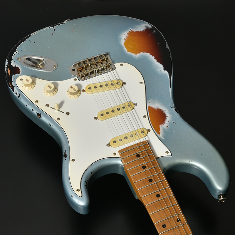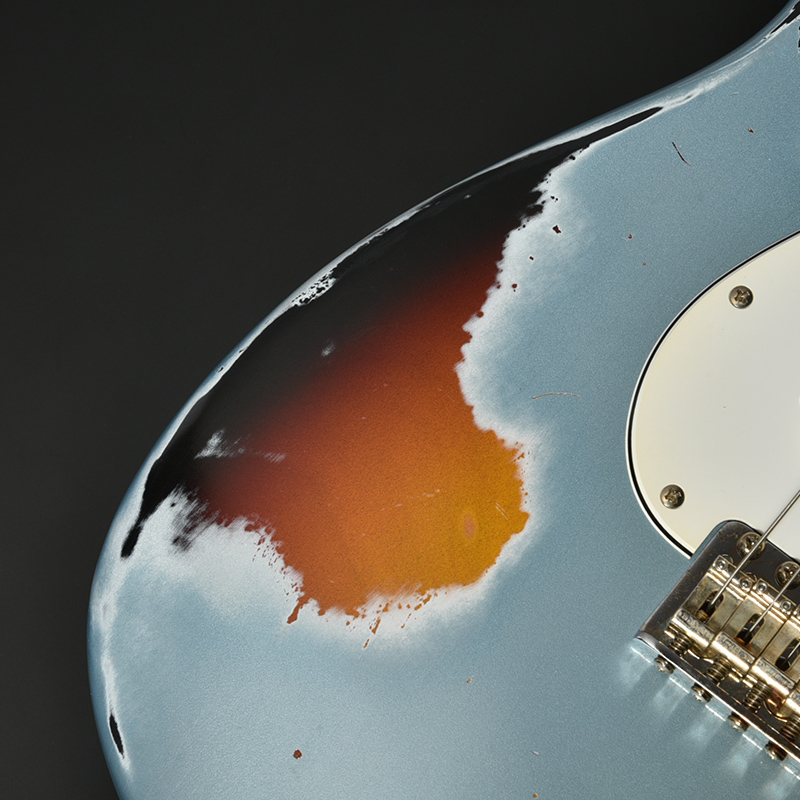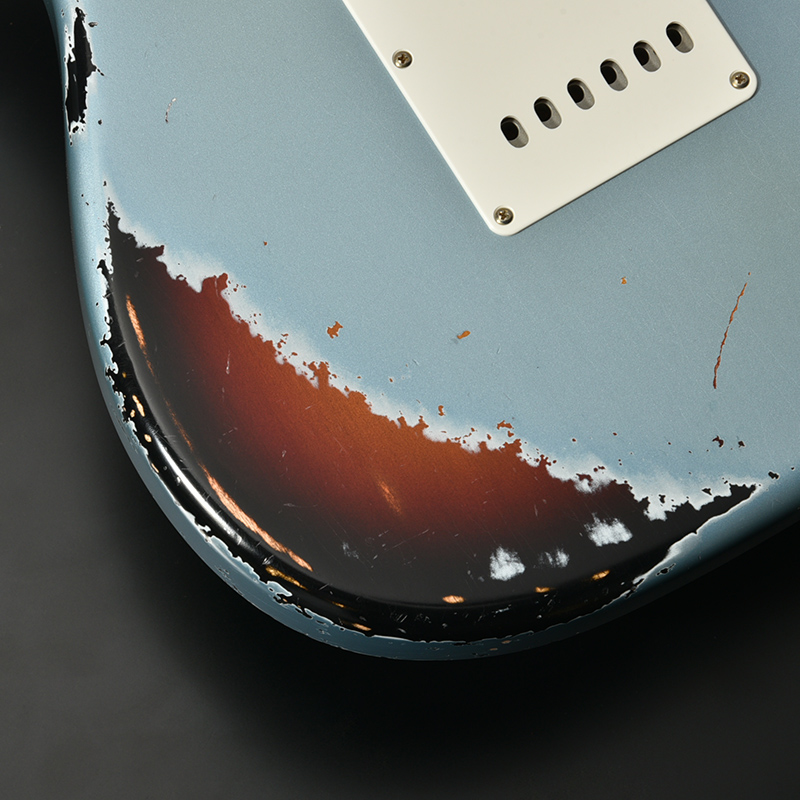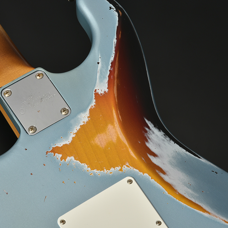 インパクト抜群のマルチレイヤーカラー&エイジド加工を施した一本。ボディはもちろん、ネック裏や指板、各種金属パーツに至るまで自然な経年変化を再現。ボディには近年その数が減少しつつある貴重なアッシュ材を採用しております。