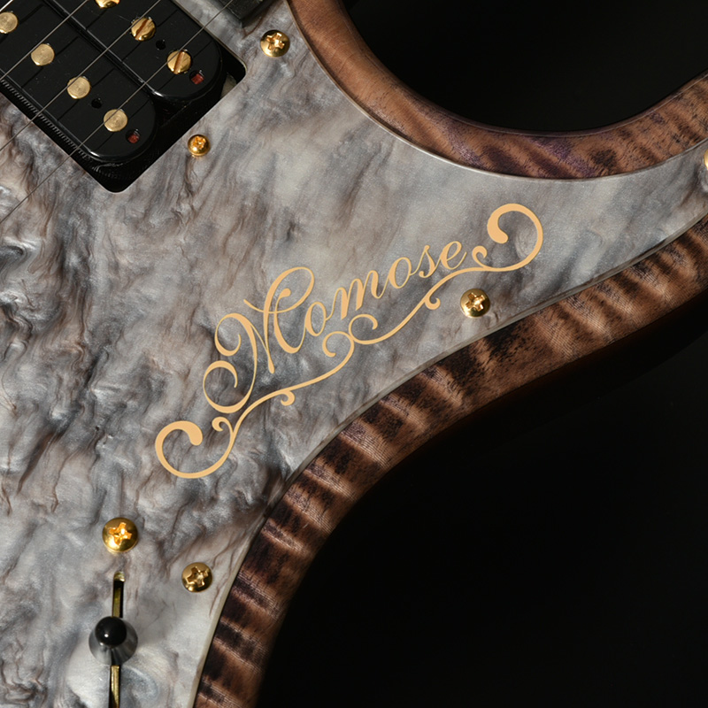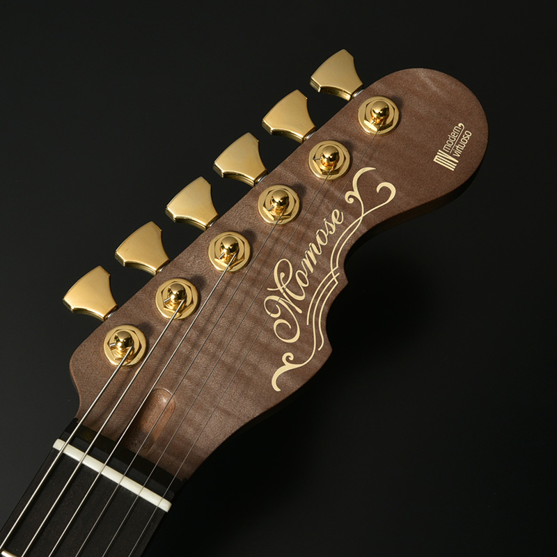 シリーズ名に含まれる『Virtuoso』とは芸術の(特に音楽の)名人、名手、大家、巨匠、という意味を持つ英語です。誰もが自分の音楽を表現し、発信できるようになった現代に求められる仕様を、Momose独自の解釈により盛り込みました。Hipshot® Glip-Lockペグの搭載やGOTOH®製のアーミングに優れたブリッジの新採用など、ハードウェアも一新されています。