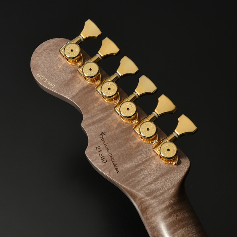 トチは東日本を中心に広く分布し、銘木と評される高級和材の一つです。杢目の出た美しい木肌は塗装映えも素晴らしく、カラーリングによって様々な表情を見せてくれます。ボディ本体には定番材であるアルダーを採用し、より実践的なサウンドを突き詰めています。