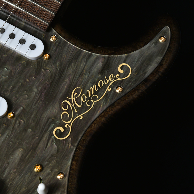 シリーズ名に含まれる『Virtuoso』とは芸術の(特に音楽の)名人、名手、大家、巨匠、という意味を持つ英語です。誰もが自分の音楽を表現し、発信できるようになった現代に求められる仕様を、Momose独自の解釈により盛り込みました。Hipshot® Glip-Lockペグの搭載やGOTOH®製のアーミングに優れたブリッジの新採用など、ハードウェアも一新されています。