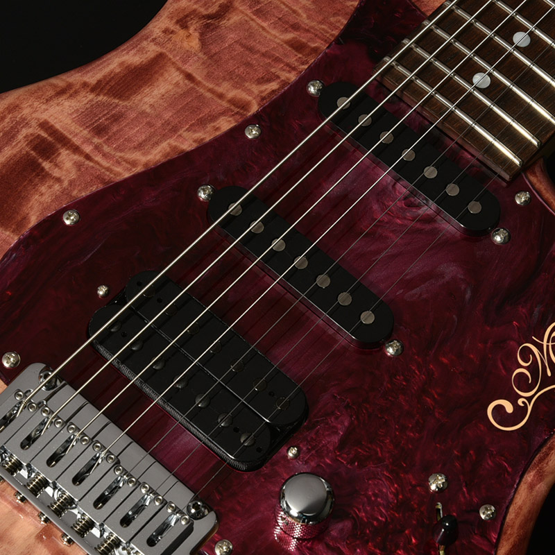 7弦モデル用として、アメリカ、ノースカロライナ州で製作しているハンドワイアリングピックアップ 「Mojotone」をセレクト。250ブランド以上ものOEMも手掛けており、ビンテージフィーリングの中にも個性があり高い評価を得ています。リアポジションに装備された”Classic 7-String Humbucker”は、オリジナルPAFの再現を指向した同社の”Clone ’59モデル”をより現代的な味付けにセットアップした一品。7弦用に強調された低音と、理想のロングサスティーンを実現しています。