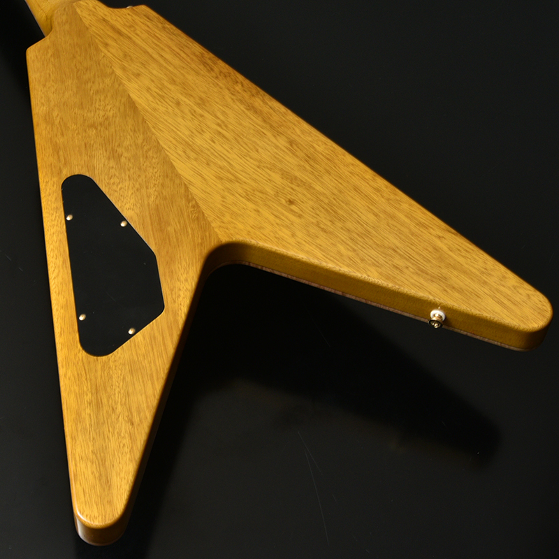ボディ面積の広いMFVモデルで1ピースのトップ材として使用できるほどの大きさを持つフレイムメイプル材は少なく、今回のようにしっかりと杢の出た材料となりますとより希少となります。