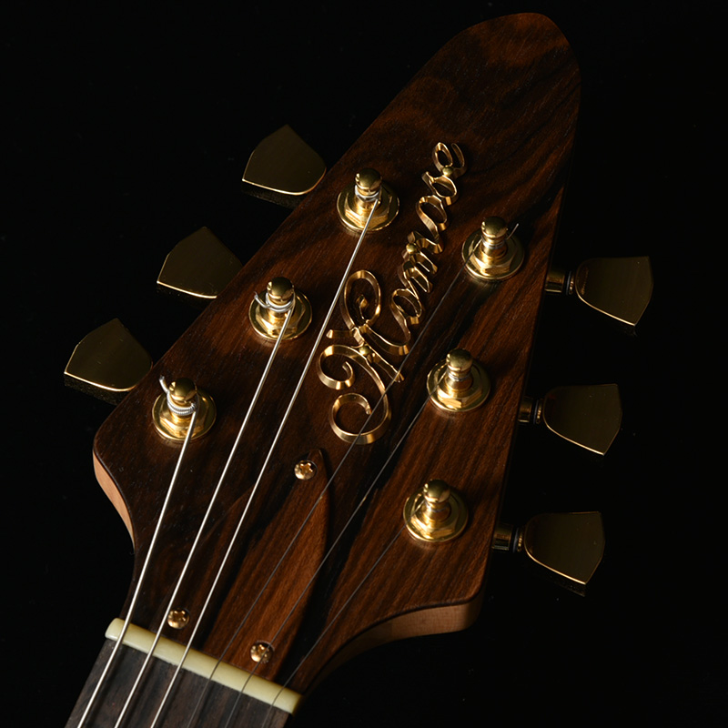 バック材だけでなく、ネック、ピックガードにもそれぞれトチを使用。自然が生んだ杢目の数々をその手に感じていただけます。