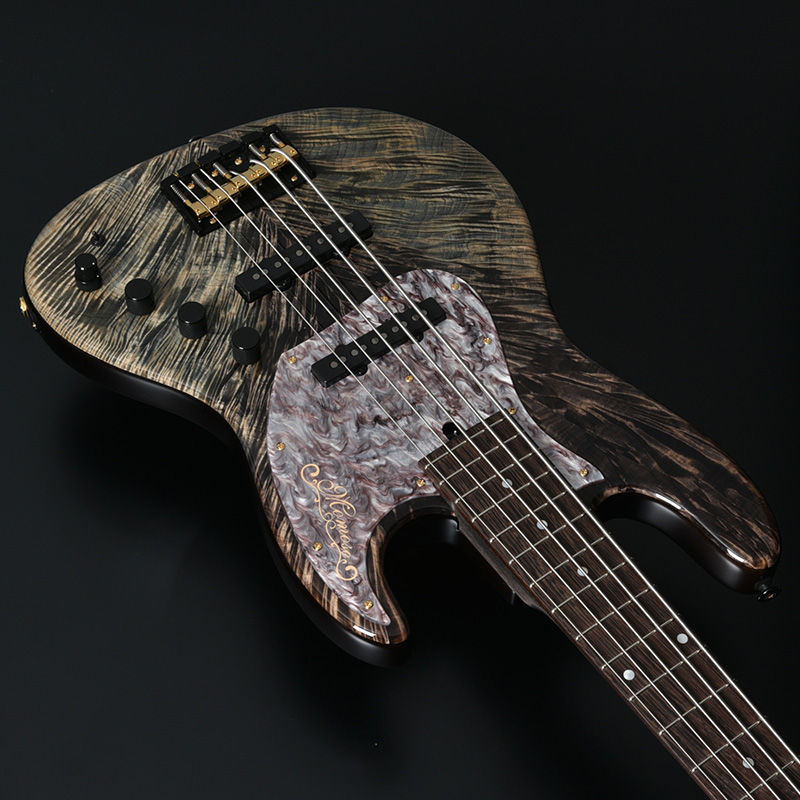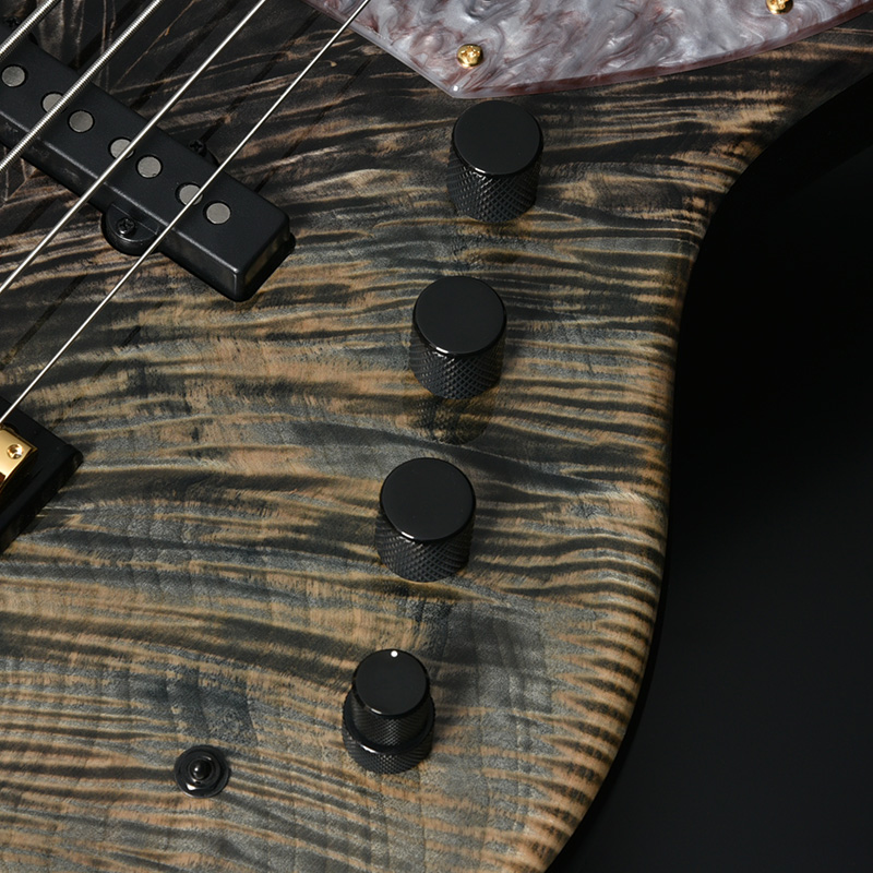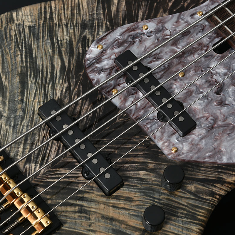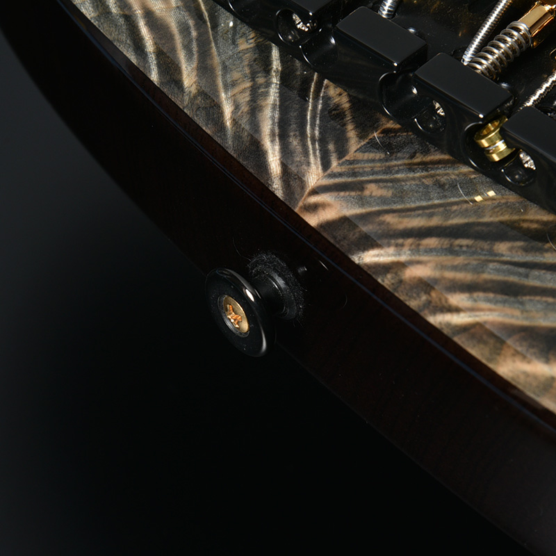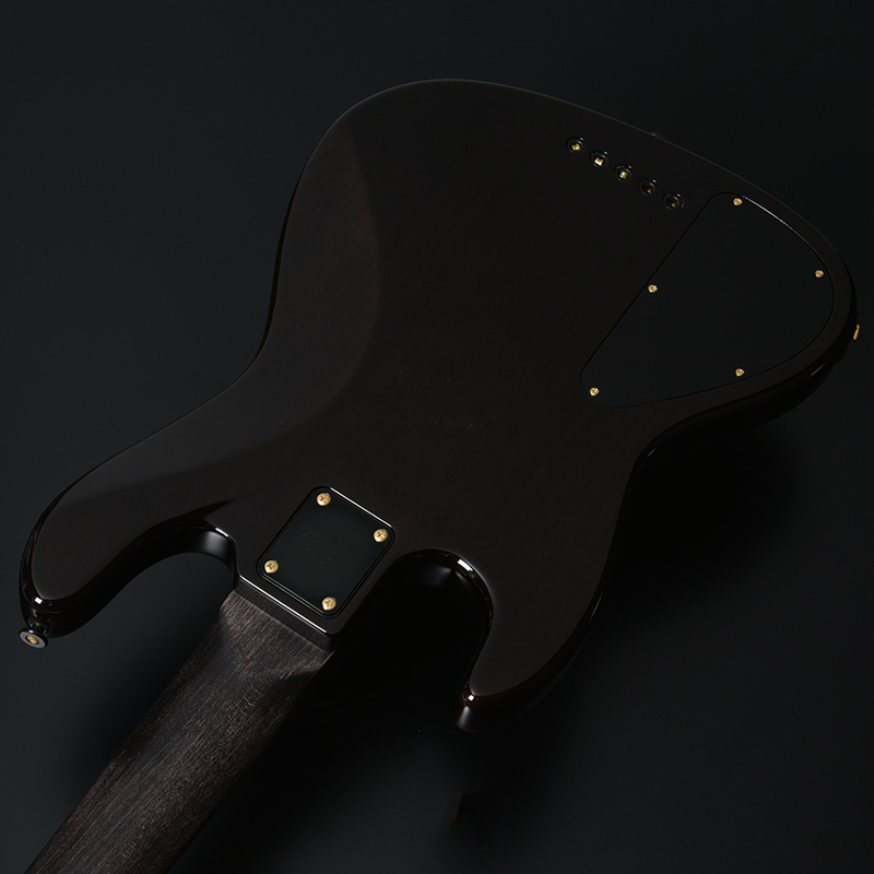メイプル材などと比べて強度が高く、非常に硬質な特性を持つ「ウェンジ」。指板材に取り入れられることで、安定感のある抜けの良いサウンドを実現します。本モデルではネックのメイプル材を反りやねじれに強い「柾目(まさめ)」で製材することで、安定感抜群の演奏性と末長く愛用いただける仕様を実現しています。