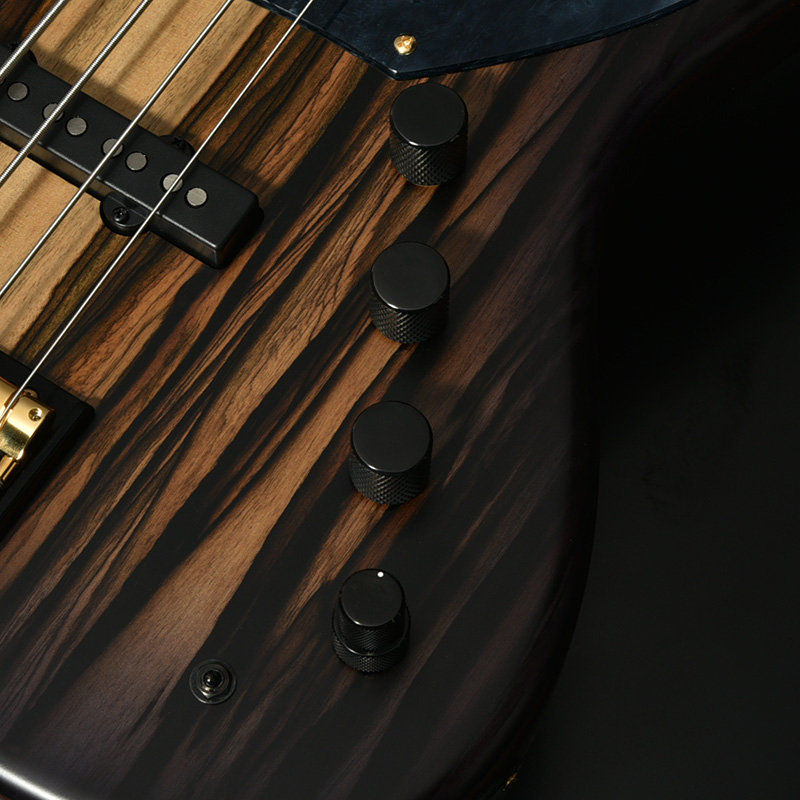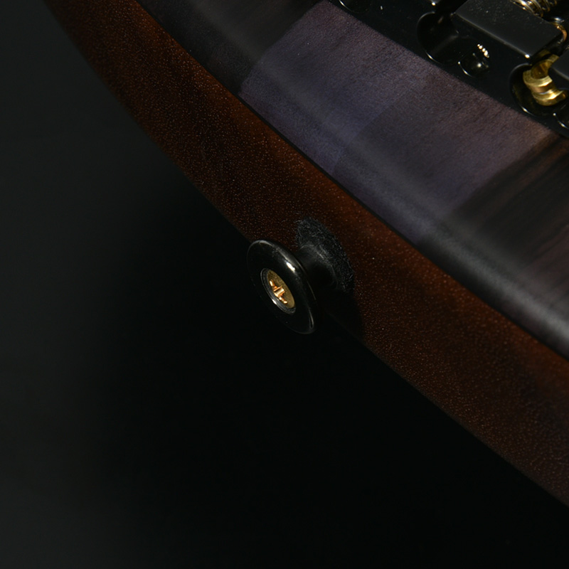 指板には黒々とした高級感のあるルックスでおなじみのエボニー材を採用。定番のローズウッドなどに比べて重量があり、立ち上がりが早く輪郭のあるトーンと伸びやかなサスティーンを生み出します。本モデルではネックのメイプル材を反りやねじれに強い「柾目(まさめ)」で製材することで、安定感抜群の演奏性と末長く愛用いただける仕様を実現しています。