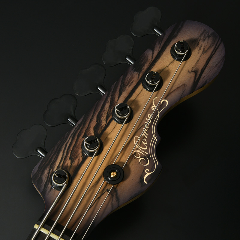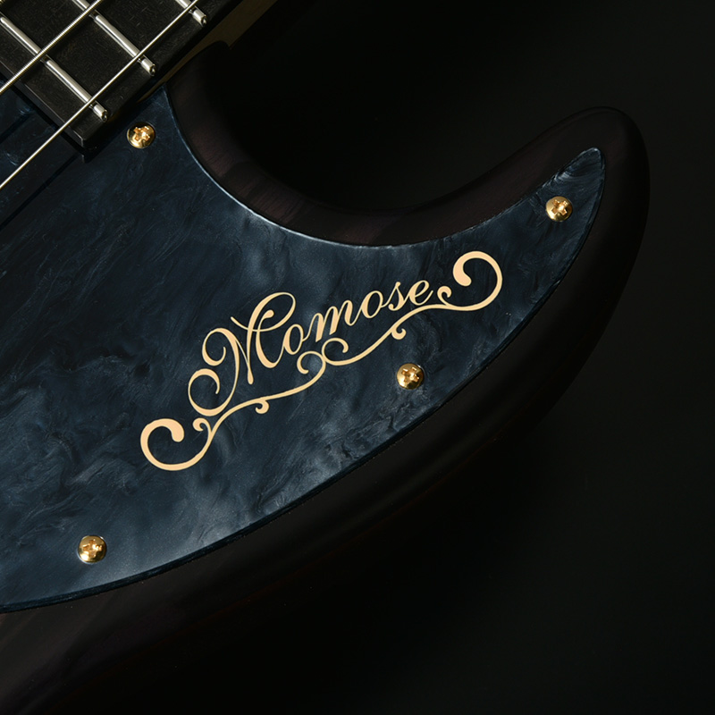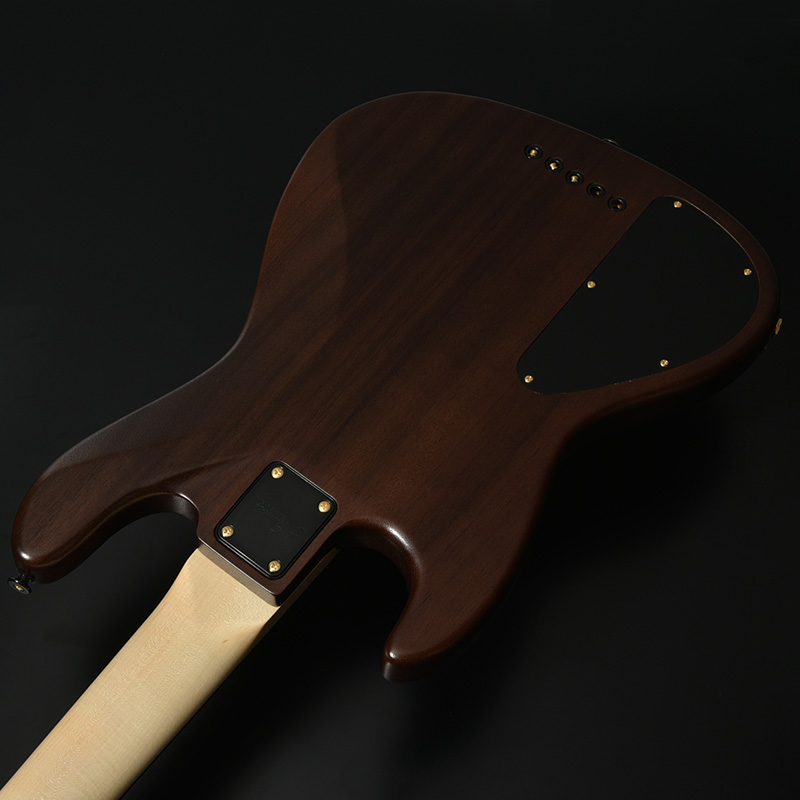 別名「ブラック&ホワイトエボニー」として知られる、和材の黒柿と似た白黒模様の杢目が特徴的な「ペールムーンエボニー」をボディトップに使用した1本。ボディ本体に使用したアフリカンマホガニーはギターとして理想の重量、硬さを併せ持つ言わずと知れた木材のひとつ。ミッドレンジの強調された粘り気のあるサウンドが魅力です。